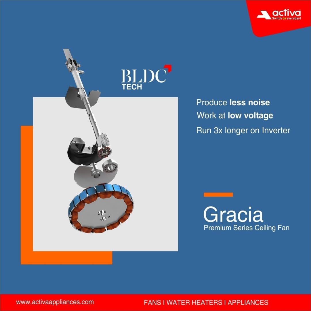 Be the first to review “ACTIVA Gracia BLDC Ceiling Fan 1200 MM – 28W Energy-Efficient Motor, BEE 5 star rated, LED Light, Remote, Reversible Airflow, Timer, Silent Operation, 5-Year Warranty, Pack of 2 (Smoke Brown)”