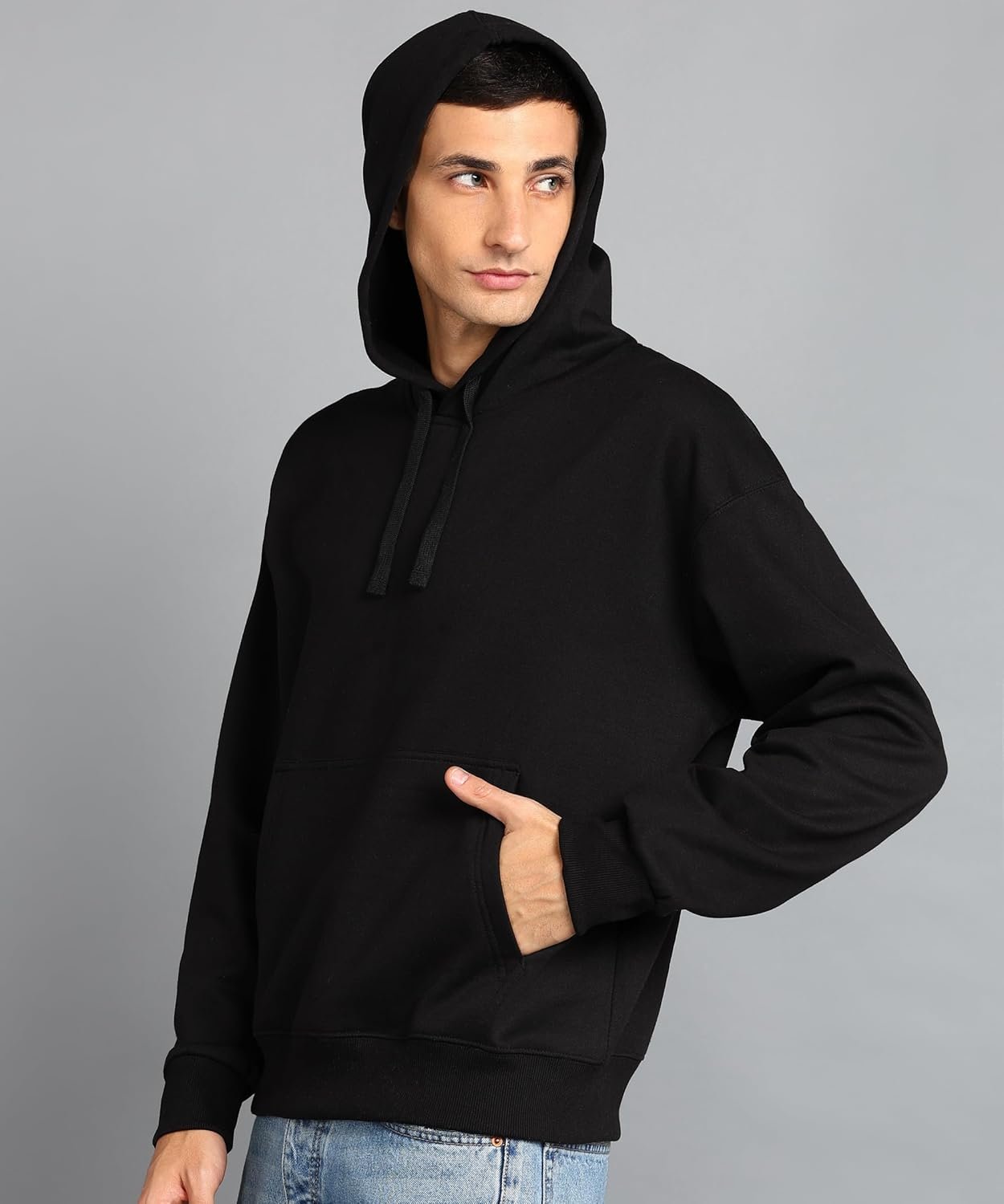 Alan Jones Clothing Men’s Solid Oversized Hoodie | Cotton Blend Pullover with Kangaroo Pocket & Adjustable Hood | Casual Winter Wear