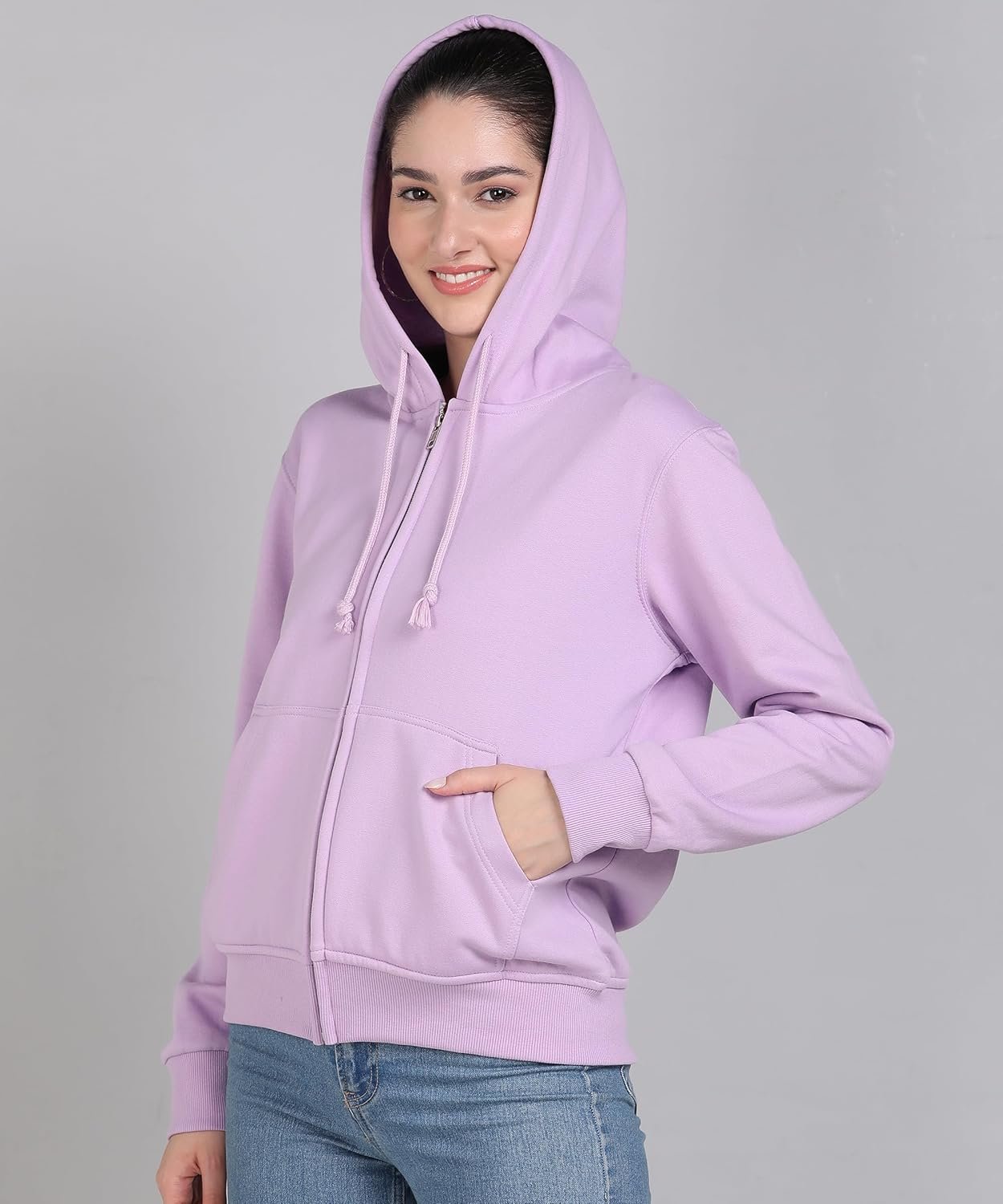 Alan Jones Clothing Women’s Solid Zipper Hooded Sweatshirt | Front Zip, Ribbed Hem, Lined Hood, Casual Winter Wear