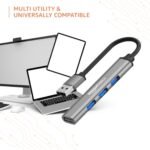 Amazon Basics 4-in-1 Hub Multiport Adapter, USB Hub with Aluminium Shell, 1 x USB 3.0 & 3 x USB 2.0 for PC, MacBook, Mac mini, iMac, Tablet, and Mobile Phones