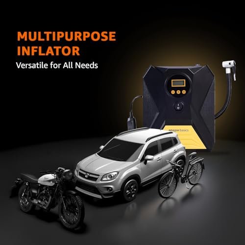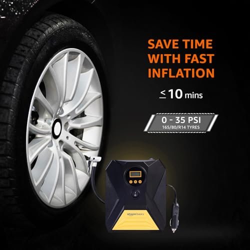 Amazon Basics Portable DC Digital Tyre Inflator 12V, 150 PSI with Digital Pressure Gauge and LED Light