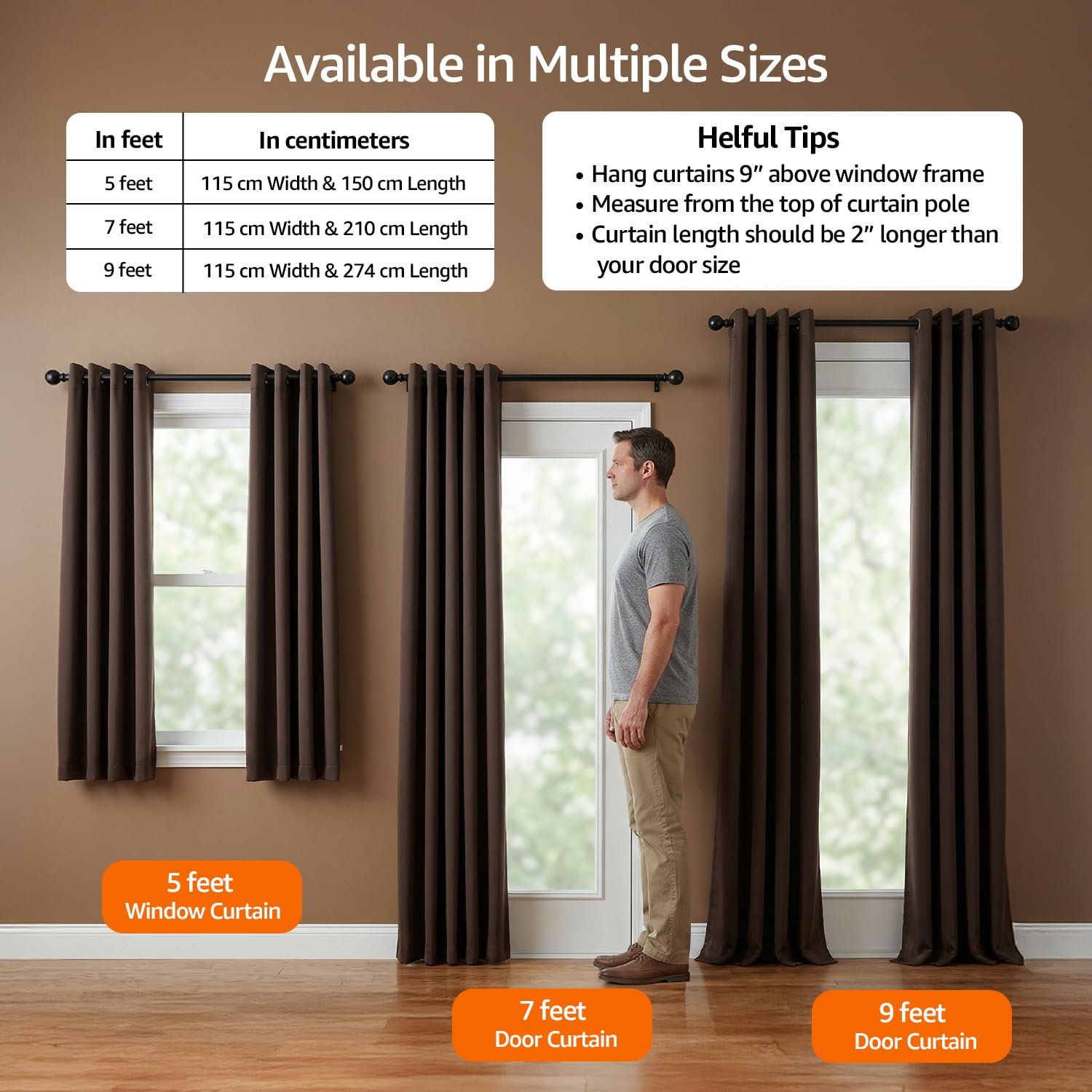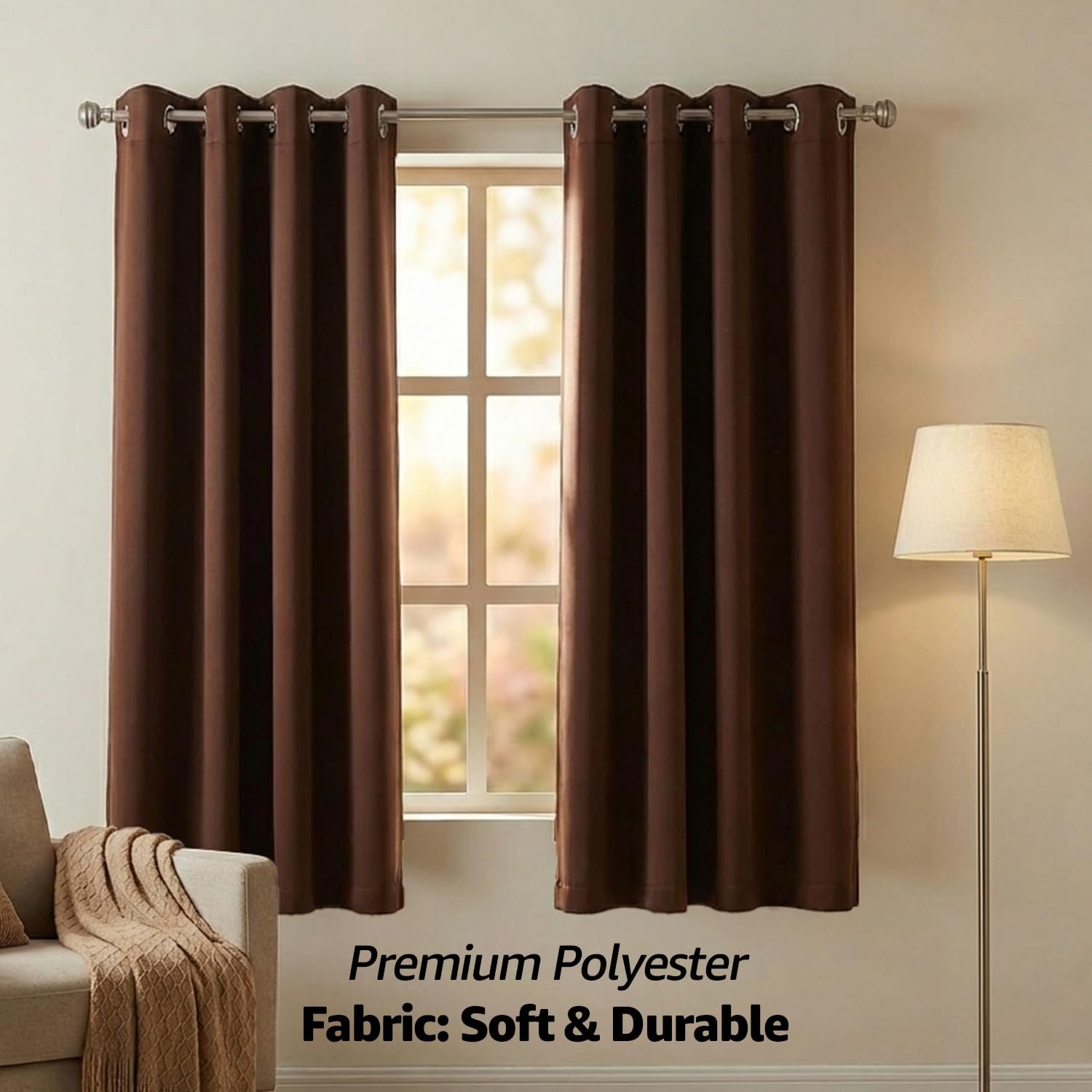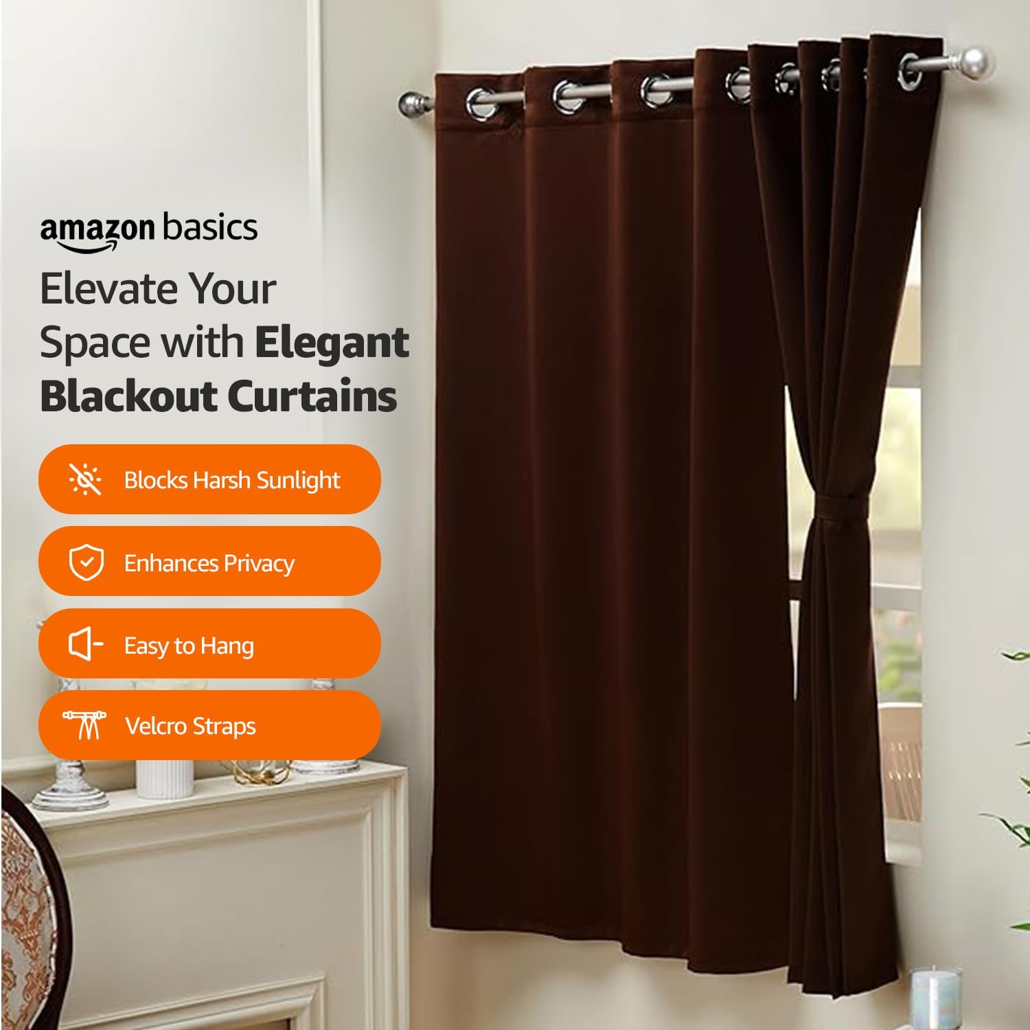 amazon basics – Room Darkening Blackout Window Curtains, 100% Room Darkening | 5 Feet |Set of 2| Plain Design | for Living Room and Bedroom | 115cmx150cm, Color- Coffee
