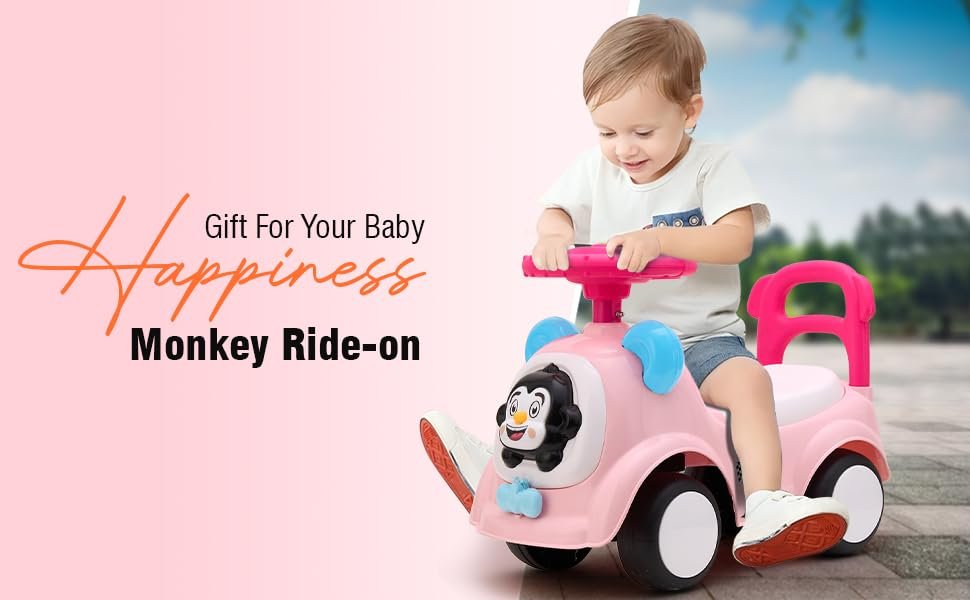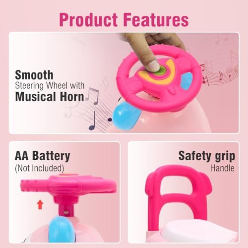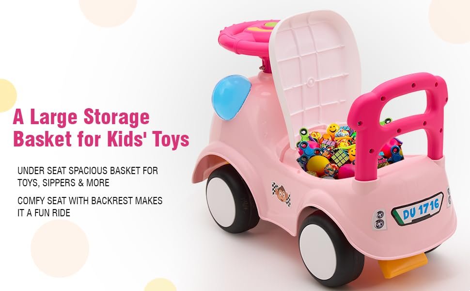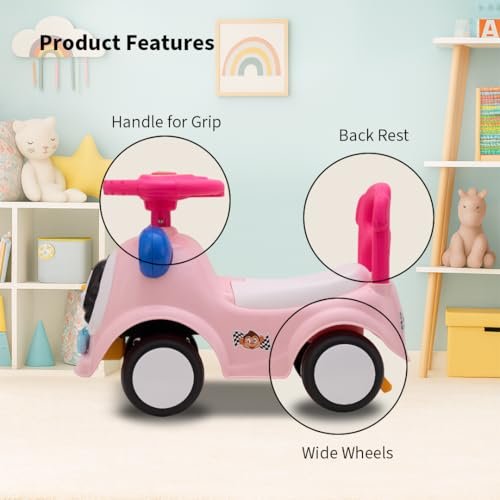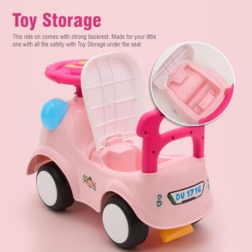 Amazon Brand – Jam & Honey Ride-on Car for Kids | for 24+ Months | Push Car with Backrest | Under Seat Storage | Indoor or Outdoor Toy | BIS Approved | Safe and Fun Toy (Pink)