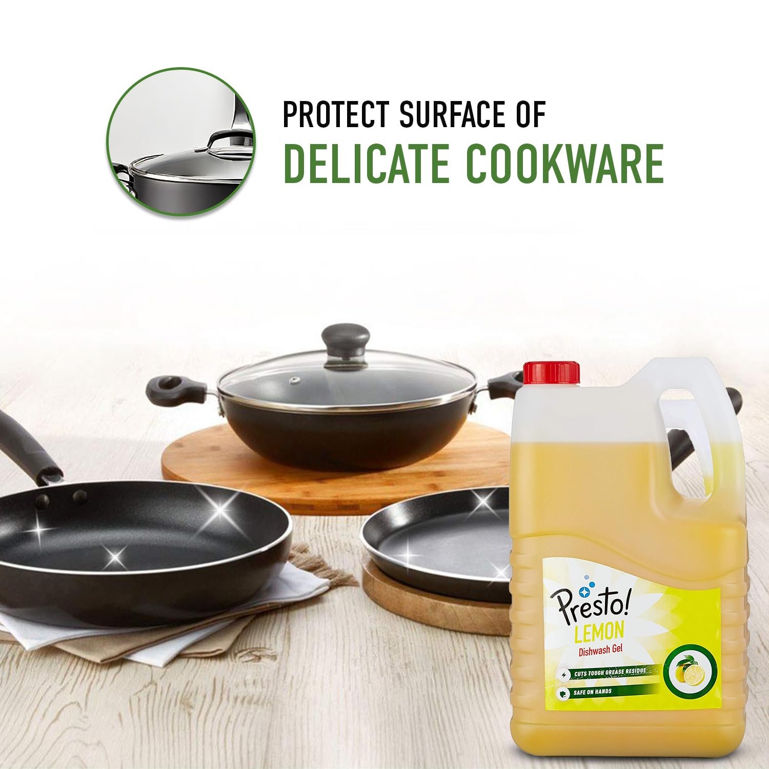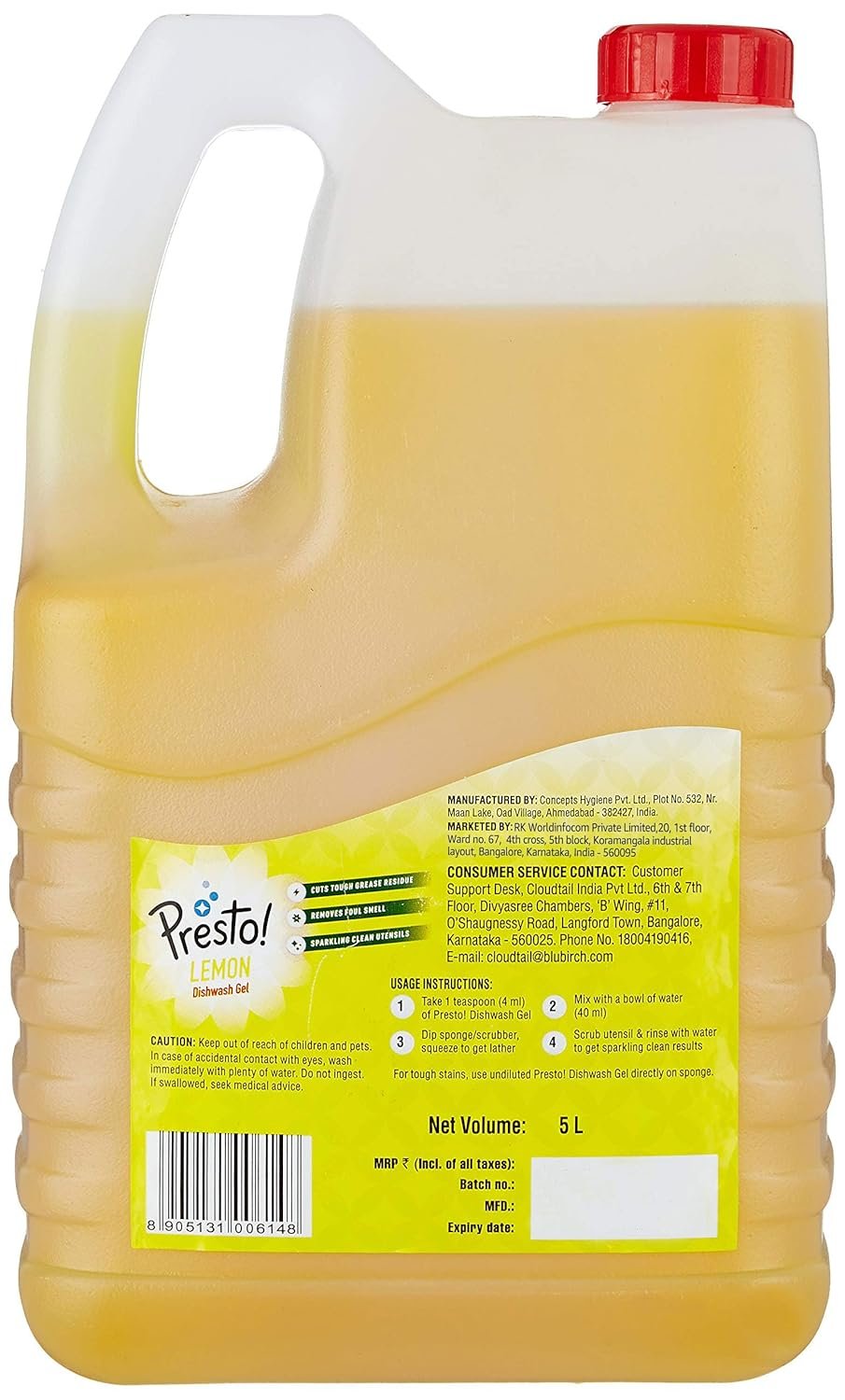 Amazon Brand – Presto! Dishwash Gel | Lemon | 5 Litre Refill Can | Dishwash Liquid | Cuts Through Grease | Safe On Hands