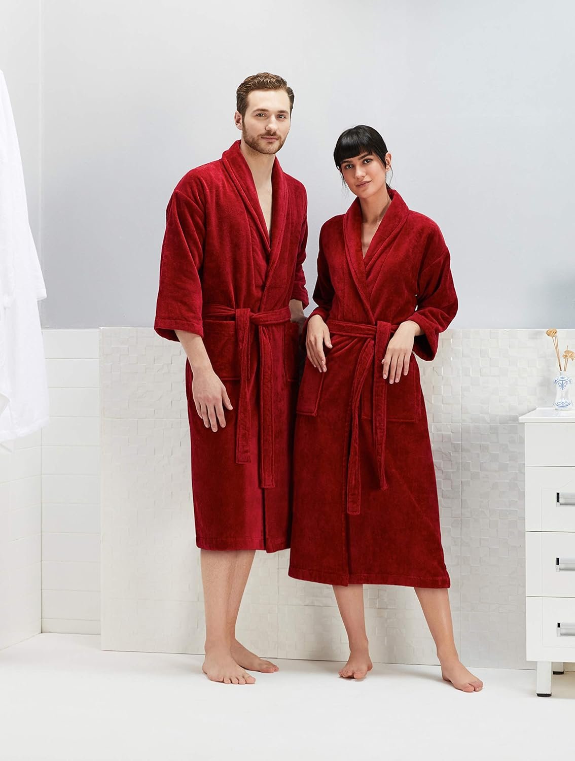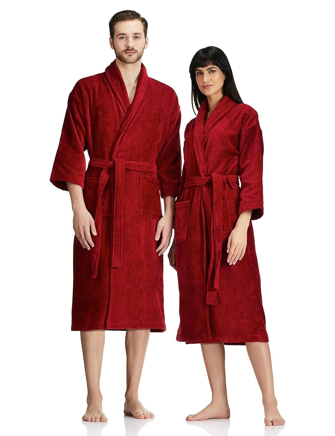 Amazon Brand – Solimo 100% Cotton Unisex Bathrobe, Brick Red, Medium, Set of 1