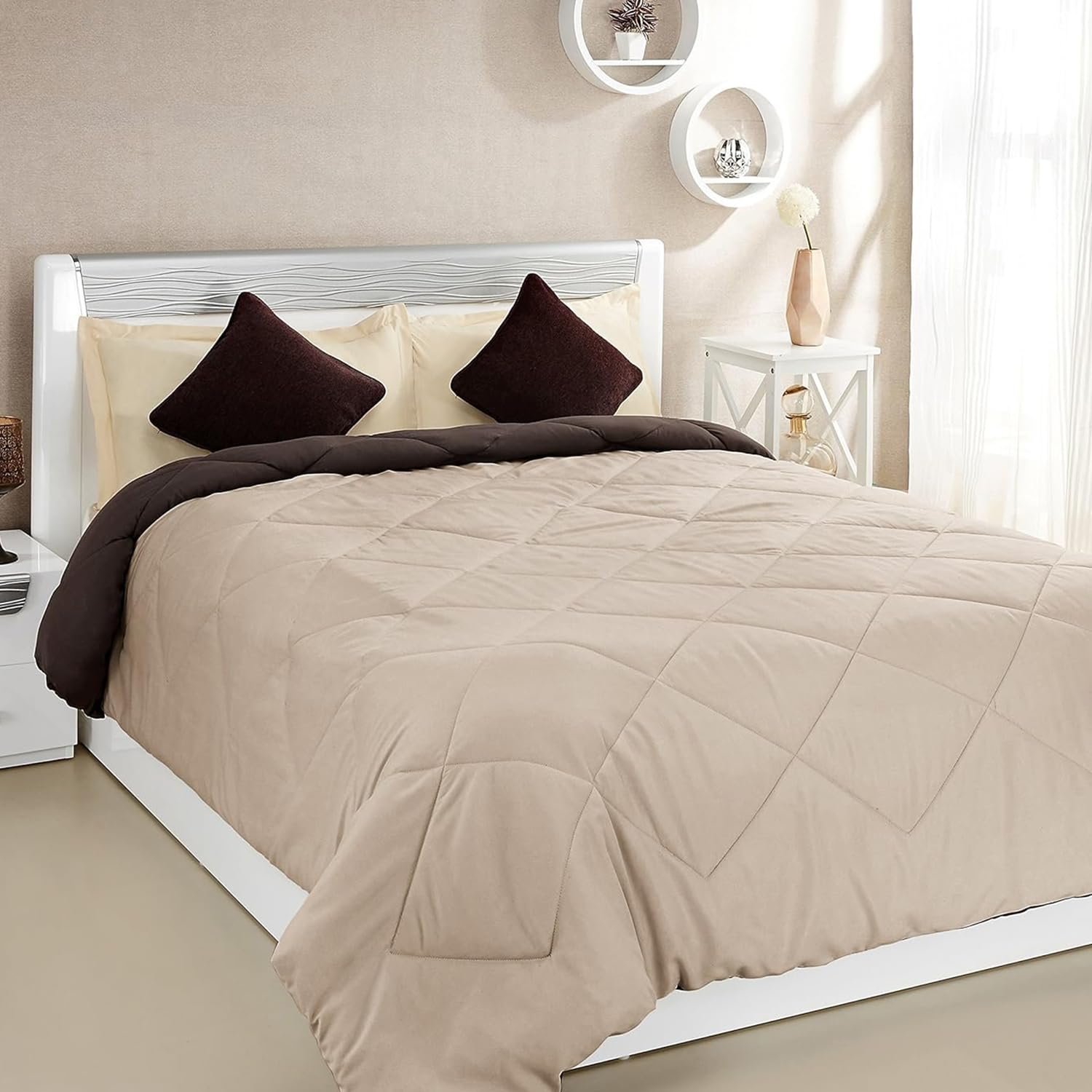 Amazon Brand – Solimo Microfibre Reversible Comforter, Double (Subtle Beige & Walnut Brown, 200 GSM), 50 TC
