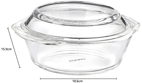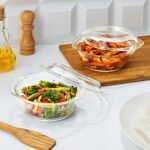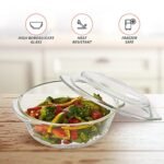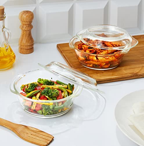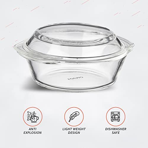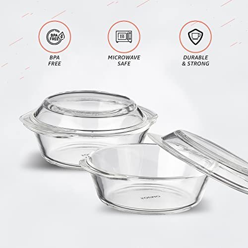 Amazon Brand – Solimo Set of 2 Borosilicate Glass Casserole-Cum-Serving Bowl with Lid | Microwave & Oven Safe| Deep Round | 650 Ml Each| Transparent