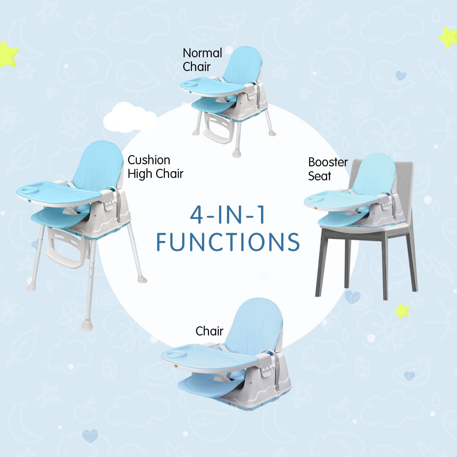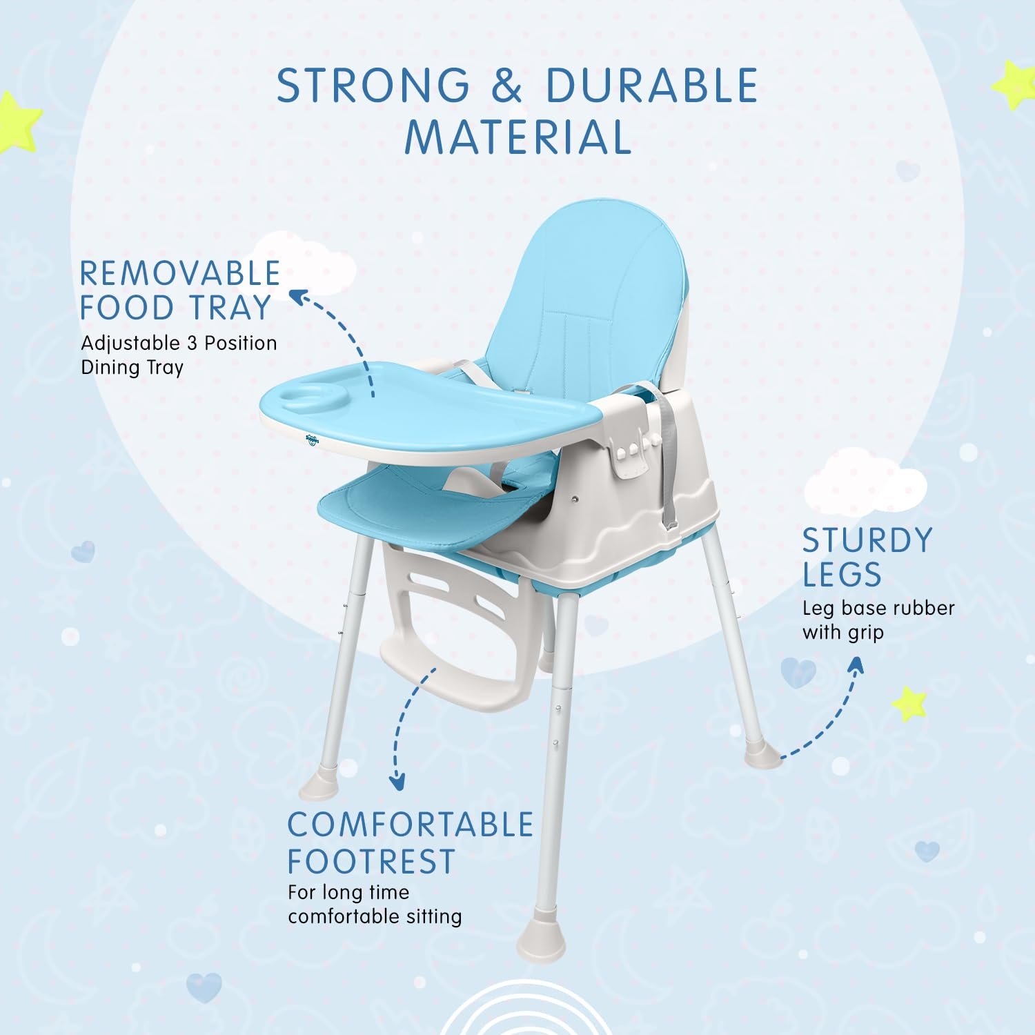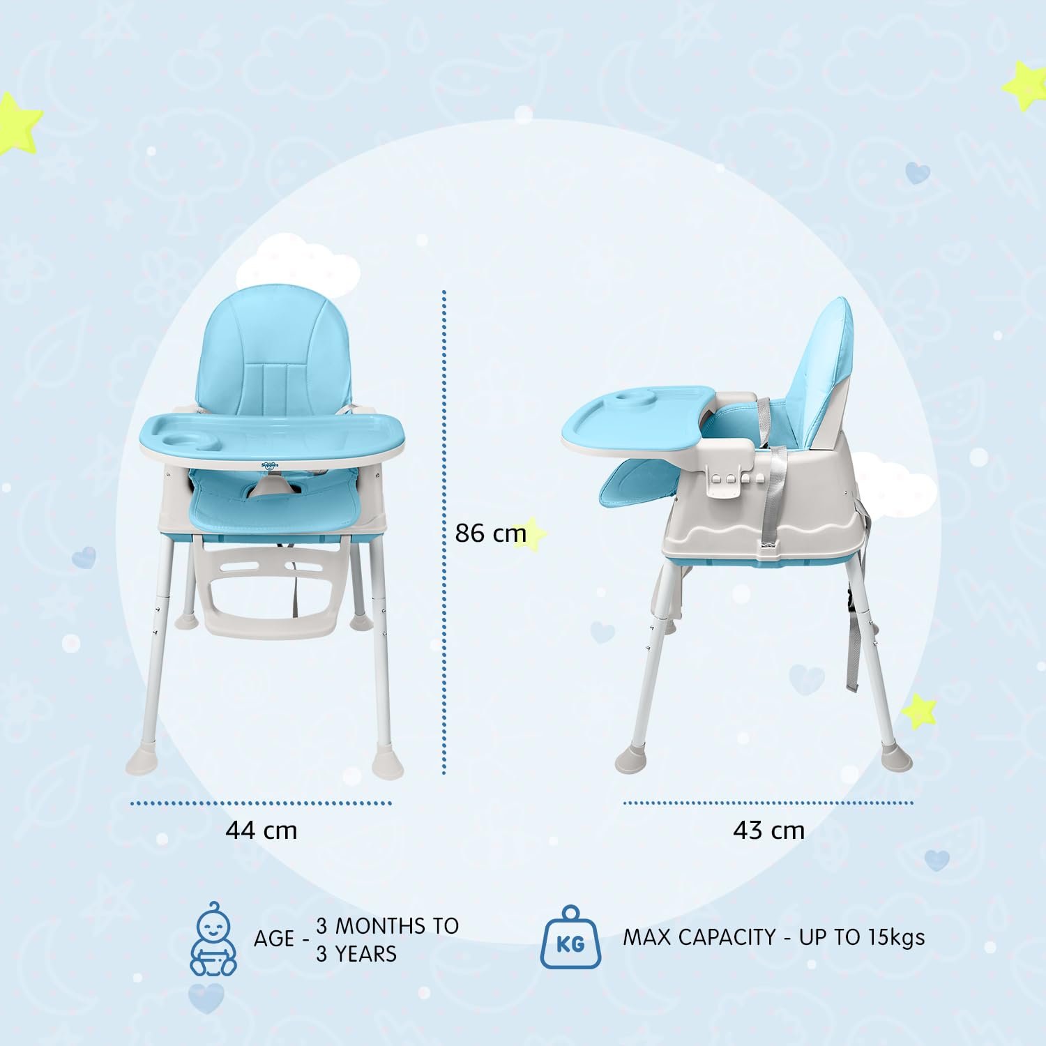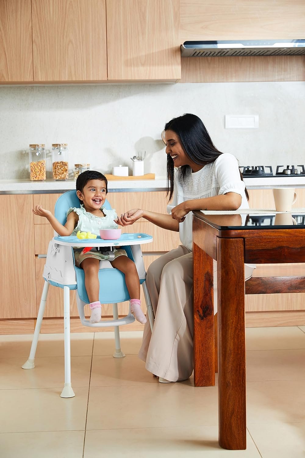 Amazon Brand – Supples 4-in-1 High Chair for Babies and Kids | Blue | Supports up to 15 Kg Weight | Detachable & Portable | Safe for Kids from 6 Months to 3 Years