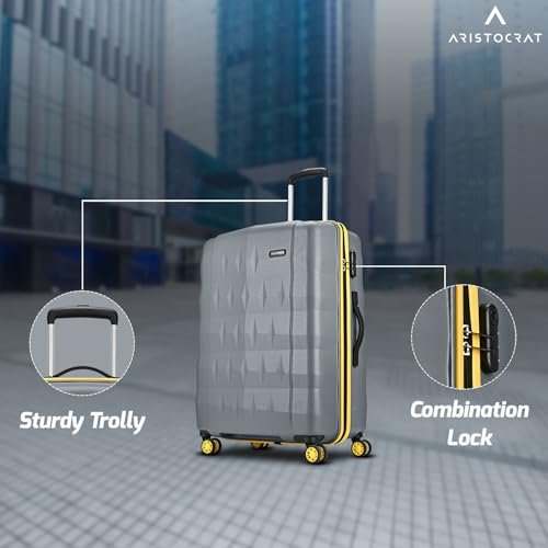 Aristocrat Comet Set of 3 Trolley Bag 56, 66 & 76cm | Small+Medium+Large | Hard Luggage| Smooth 8-Wheel Suitcase| Combination Lock with Sturdy Zipper | 3-Year International Warranty (Grey)