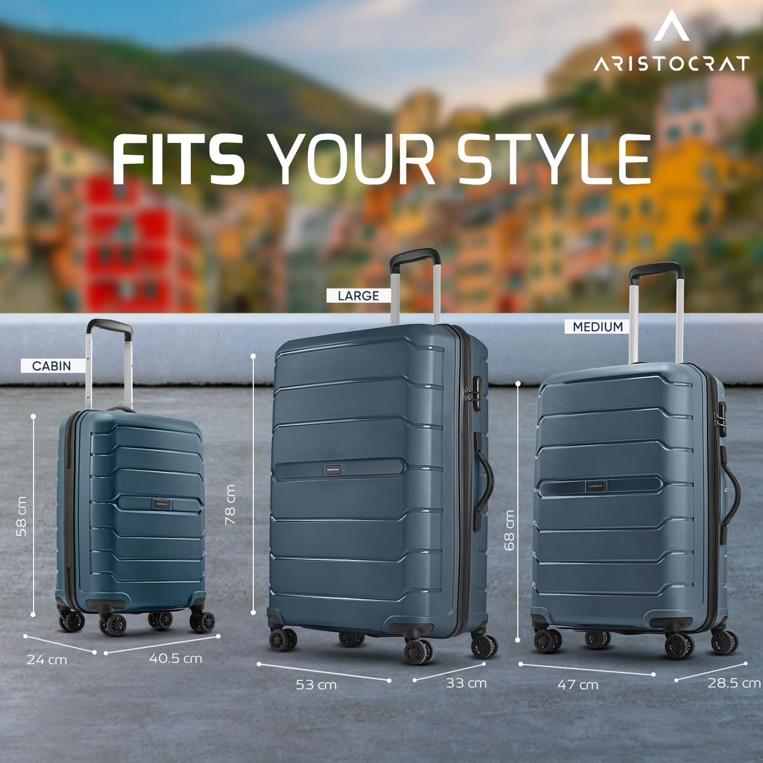 Aristocrat Liberty Set of 3 (Cabin+Medium+Large) Trolley Bag, 58+68+78Cm | Combination Lock | 8 Wheels | 5 Years International Warranty | Spanish Blue