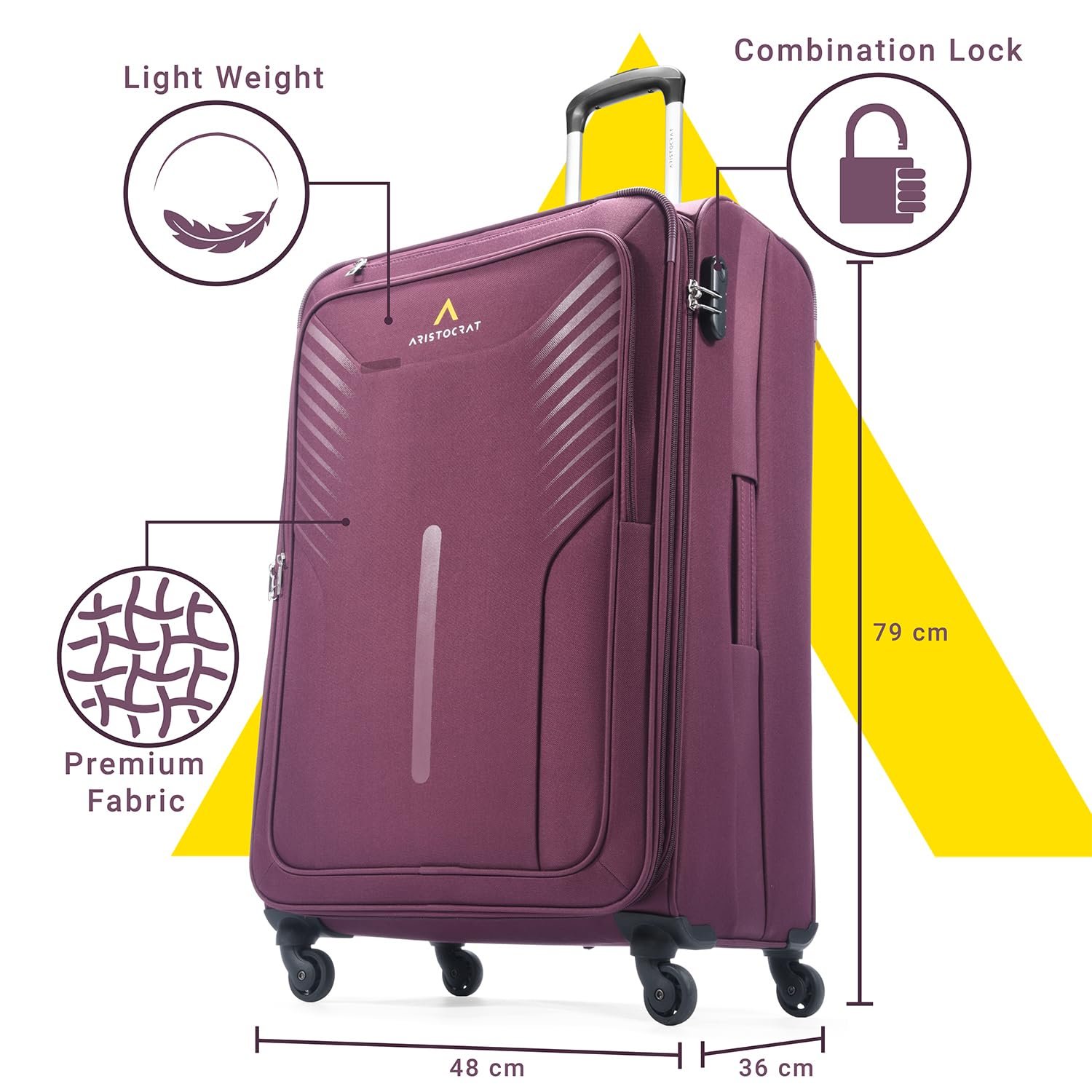 Be the first to review “Aristocrat Skyway Large Size Soft Check in Luggage (79 cm) | Spacious Polyester Trolley with 4 Wheels and Combination Lock | Dazzling Maroon | Unisex| 3 Years Warranty”