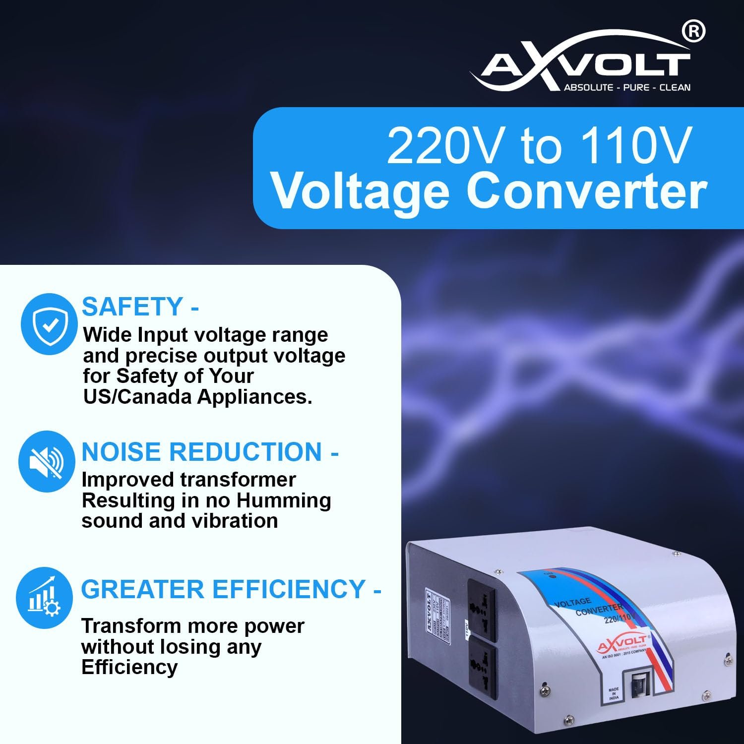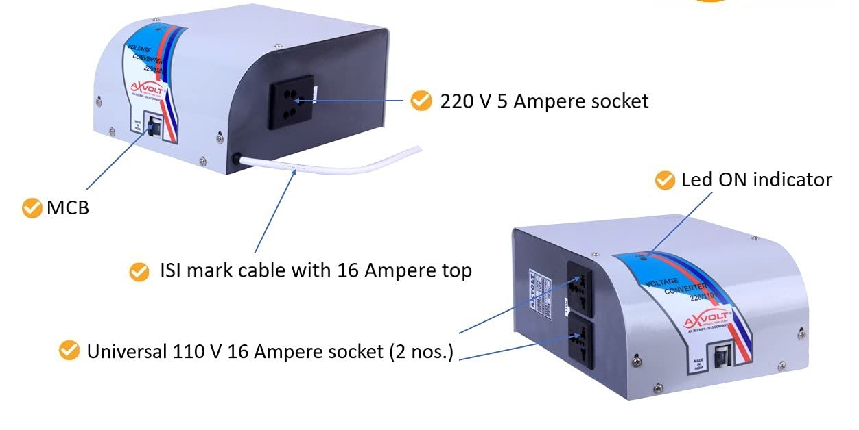Be the first to review “Axvolt 2000W Step Down Voltage Converter Transformer | 220V–240V to 110V–120V Power Converter | For US, Canada & Japan Appliances in India | Wall-Mountable | MCB Overload Protection | Heavy-Duty”