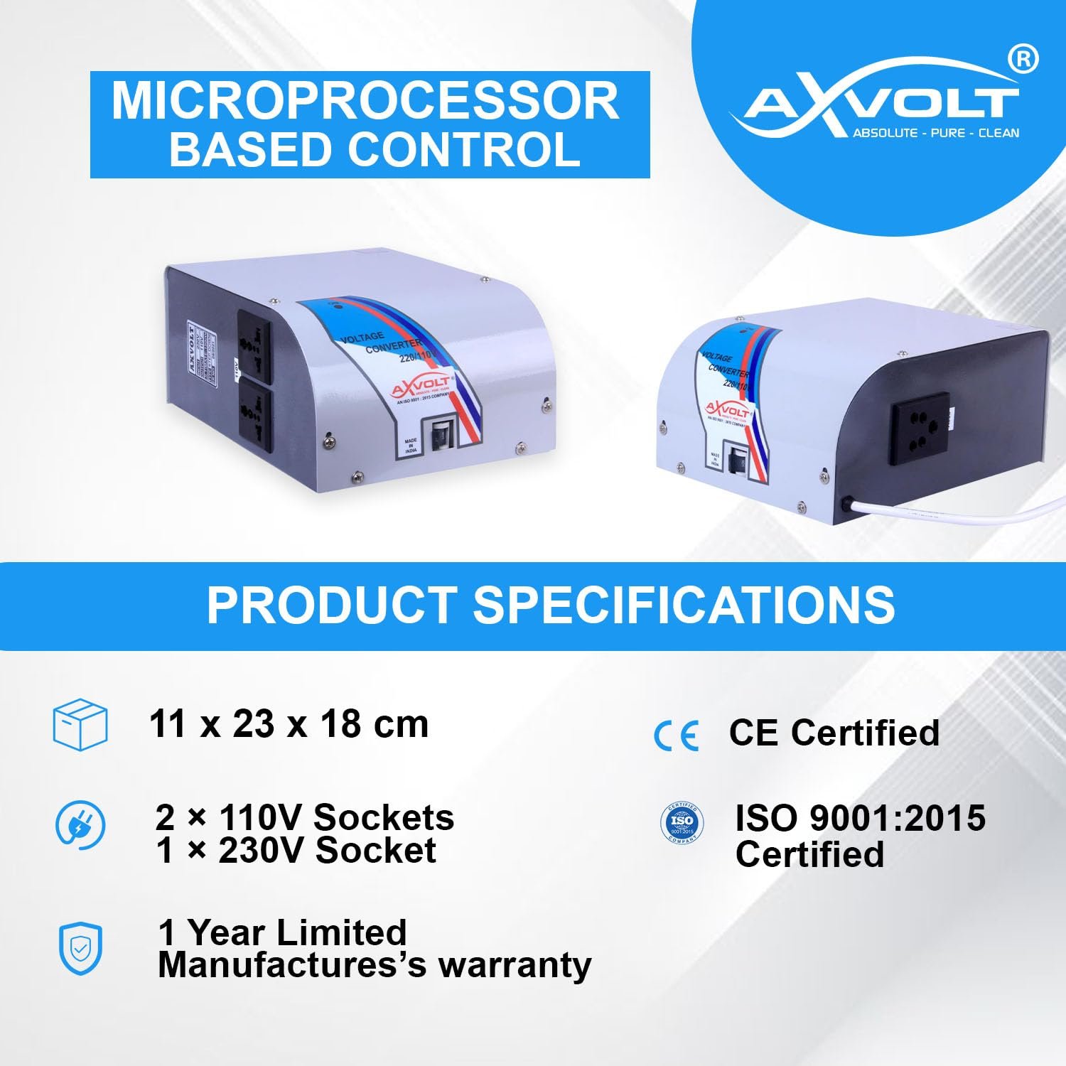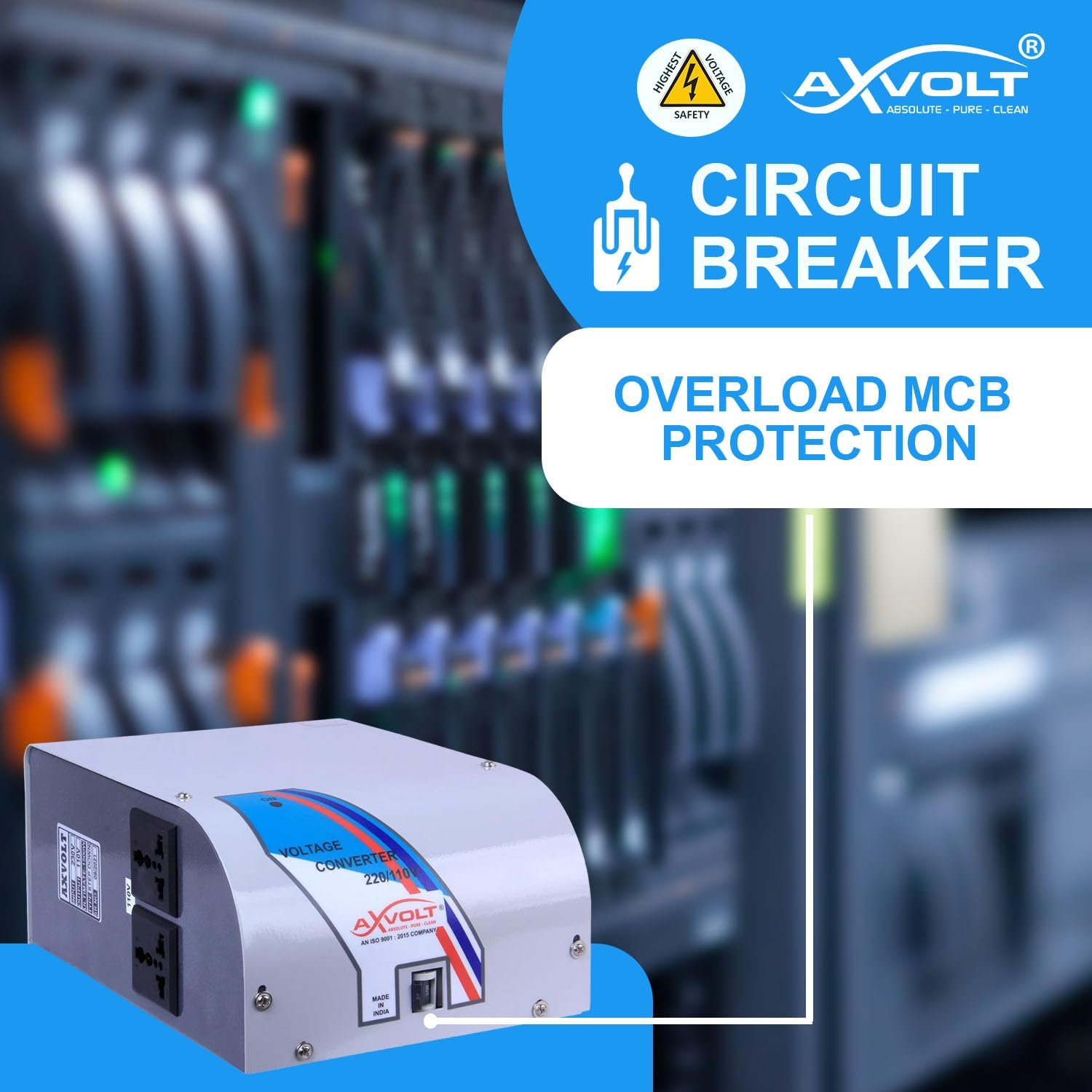 Axvolt 2000W Step Down Voltage Converter Transformer | 220V–240V to 110V–120V Power Converter | For US, Canada & Japan Appliances in India | Wall-Mountable | MCB Overload Protection | Heavy-Duty