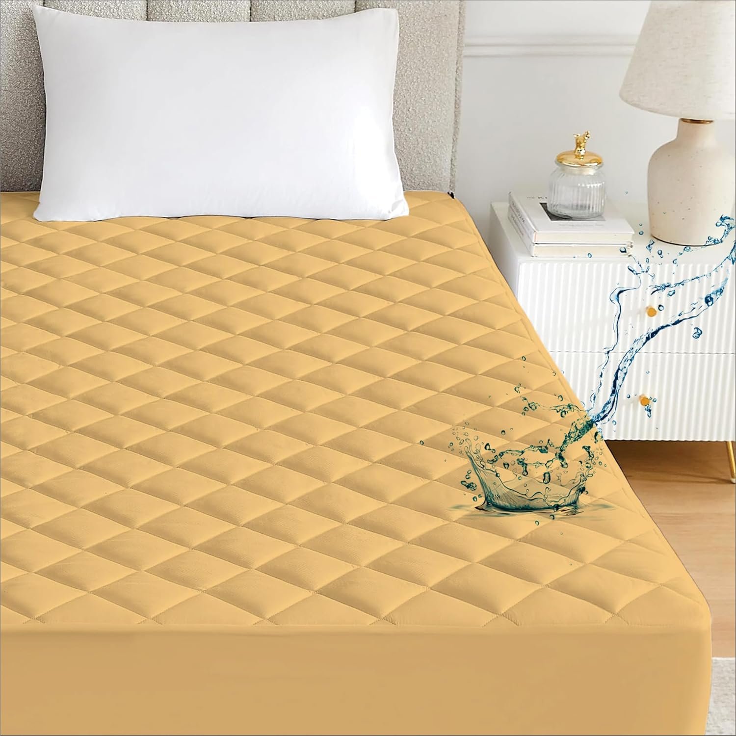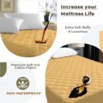 Ayka 100% Waterproof Double Size 72×48 inch Cotton Quilted Mattress Protector Breathable Hypoallergenic Noiseless Ultra Soft Elastic Fitted Bed Protector Mattress/Bed Cover (Beige, Double (72 * 48″))