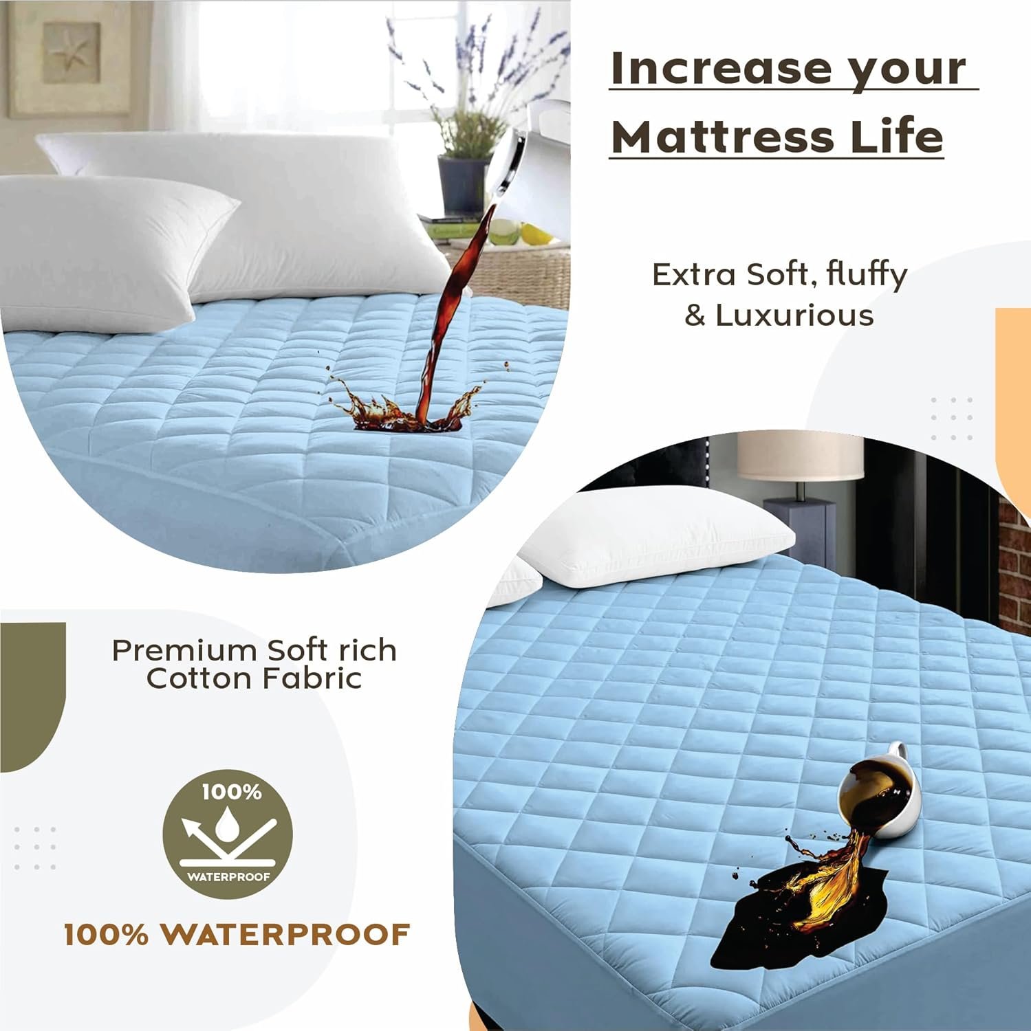 Ayka 100% Waterproof Double Size 72×48 inch Cotton Quilted Mattress Protector Breathable Hypoallergenic Noiseless Ultra Soft Elastic Fitted Bed Protector Mattress/Bed Cover (Blue, Double (72 * 48″))