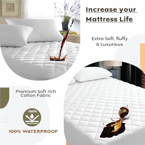 Ayka Waterproof Cotton Quilted Mattress Protector Queen Size Breathable Hypoallergenic Noiseless Ultra Soft Fitted Bed Protector 75×60 inch Mattress/Bed Cover (Queen 75×60 inch | 6.25×5 ft, White)