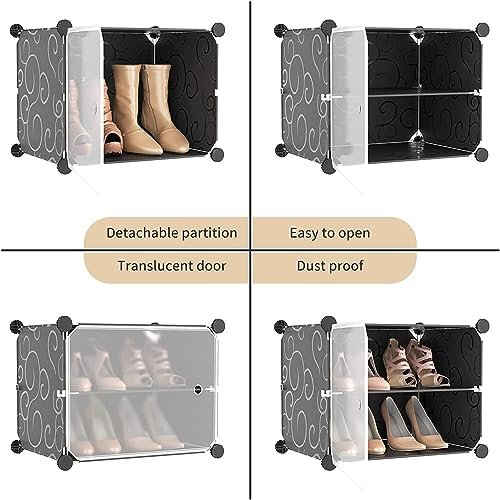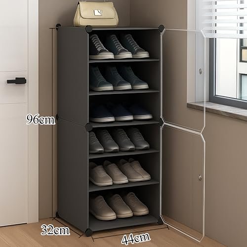 AYSIS Plastic Shoe Rack for Home | 𝟔 𝐒𝐡𝐞𝐥𝐟 DIY Shoe Rack with Door for Home Storage Plastic Box Organizer, Metal Door Frame, Chappal Slipper Sandals Stand (Grey, 6-Shelf-2-Door)
