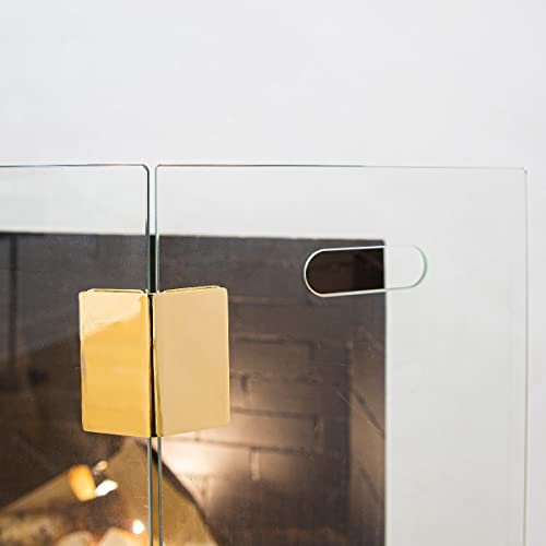 Barton 47″ Inch Fireplace Screen 3-Panel Tempered Glass Guard Fence with Side Handle (47″x30″), Clear/Gold
