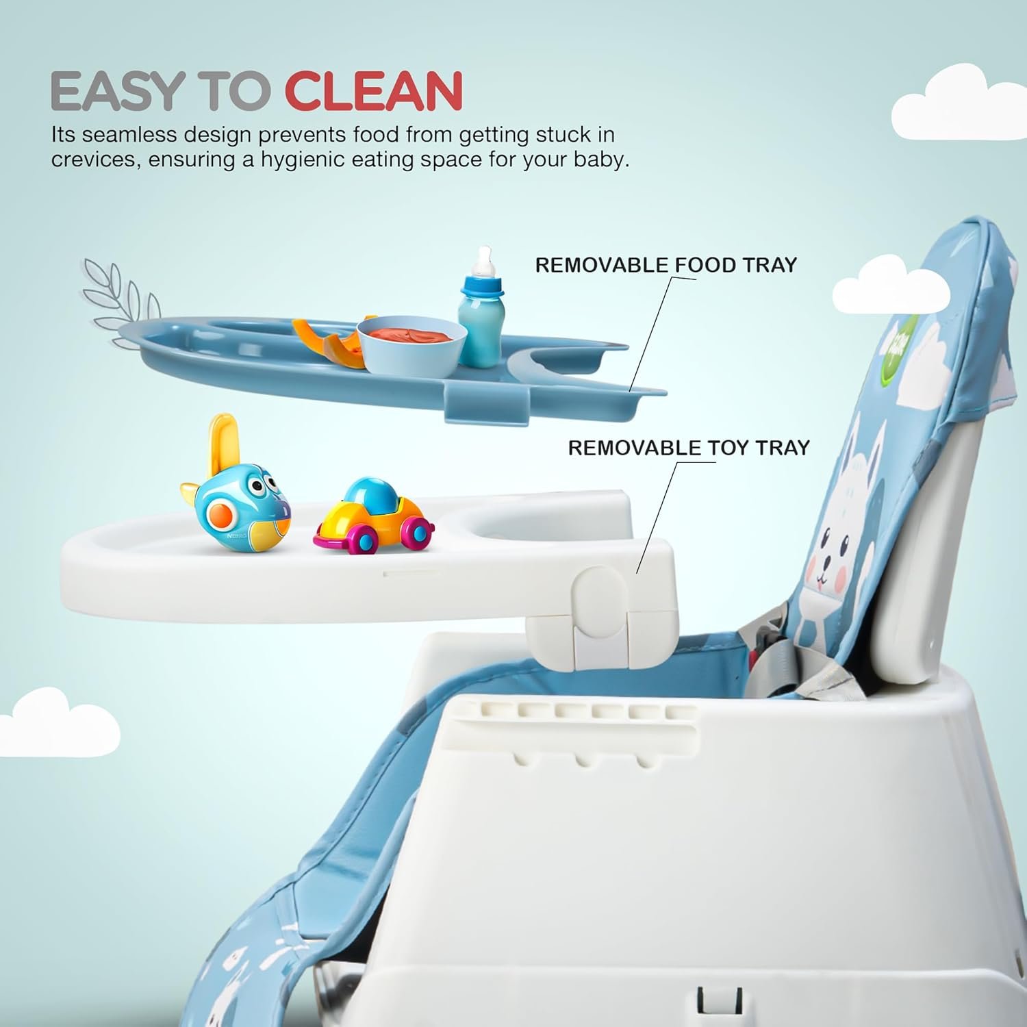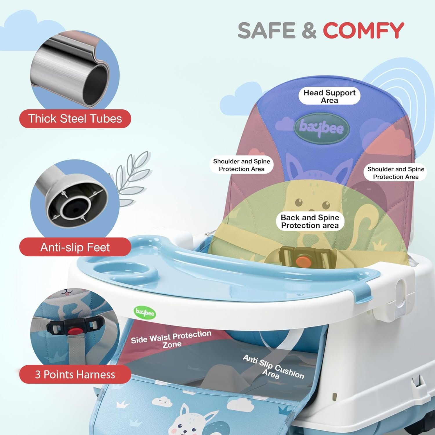 Baybee 4 in 1 Convertible High Chair for Kids | Foldable Baby Feeding Chair with Safety Harness, Adjustable Tray, Booster Seat | Easy to Clean, Portable Dining Chair (Blue)