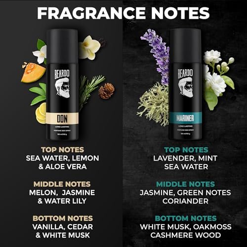 Beardo Mariner & Don Perfume Body Spray 150ml Each Combo | Long Lasting | Deo For Men | Deodorant for Men | Fresh, Aqua Notes | Gift for men | Gift For Friendst for Husband