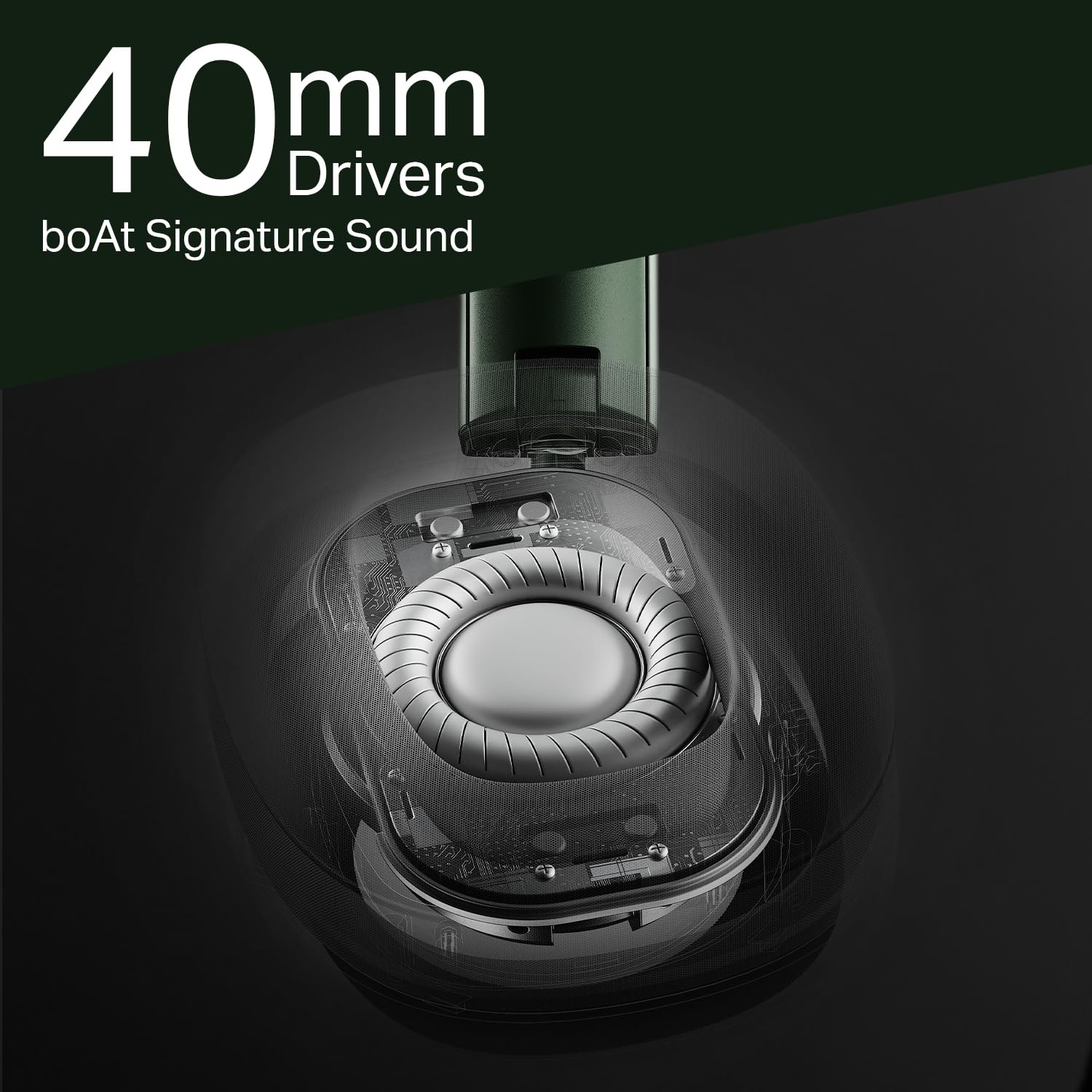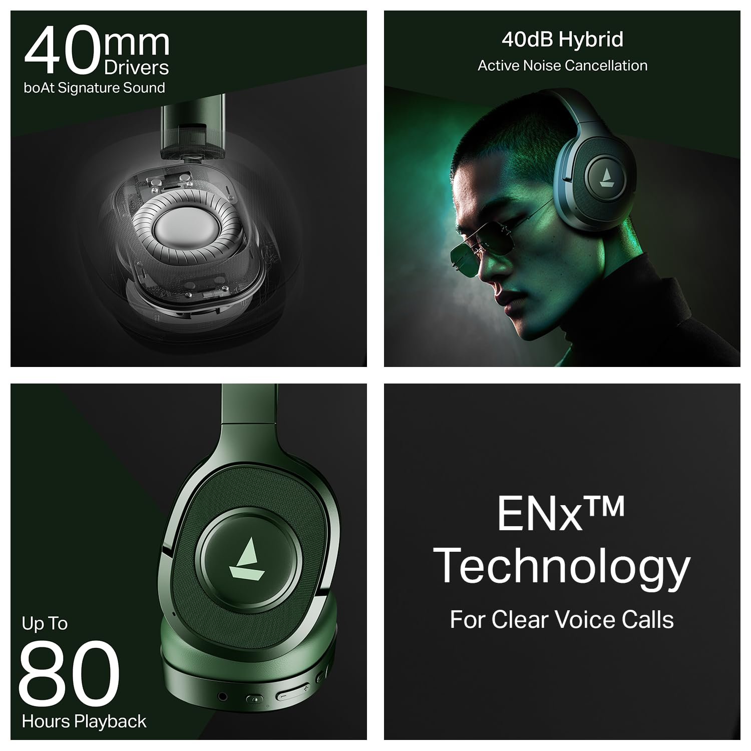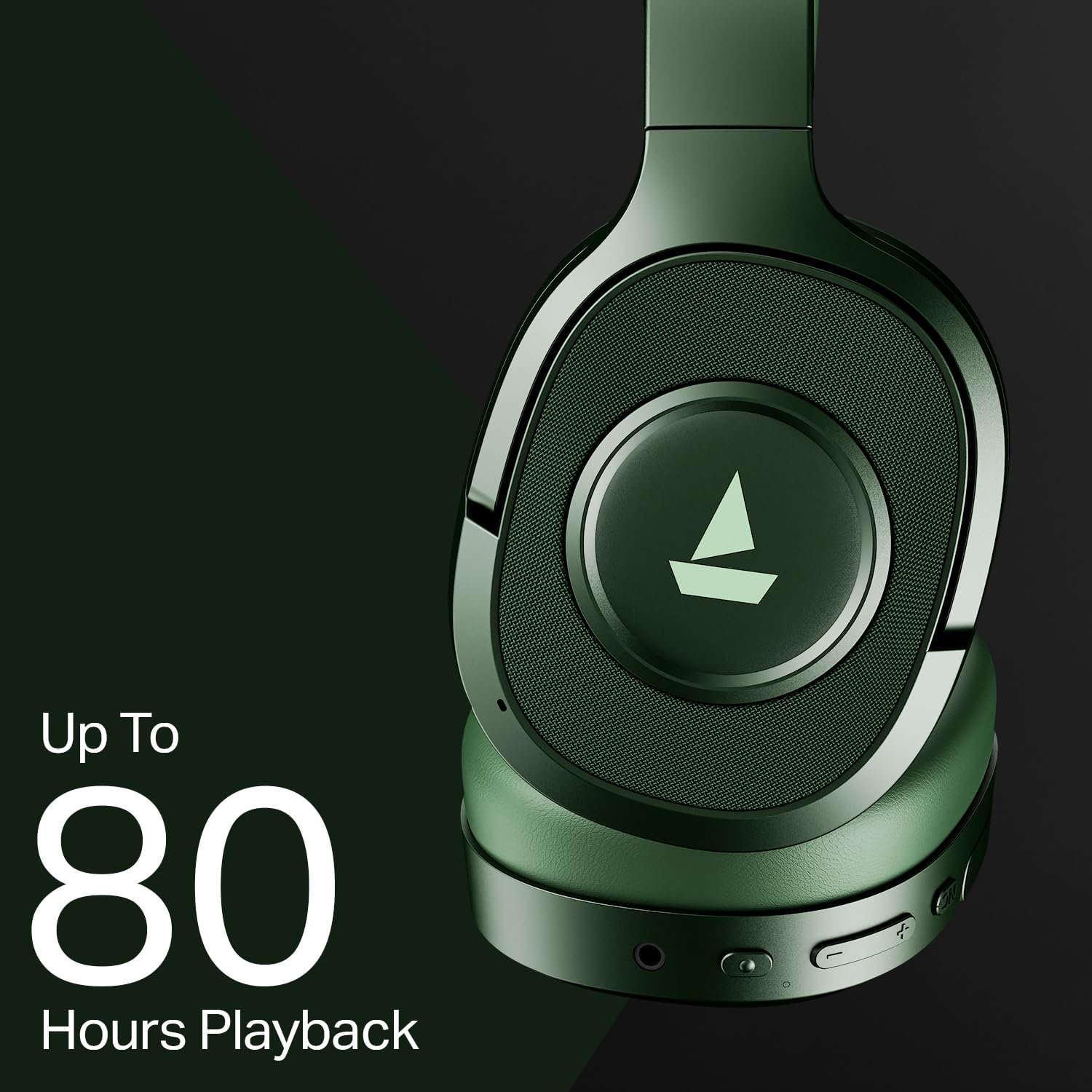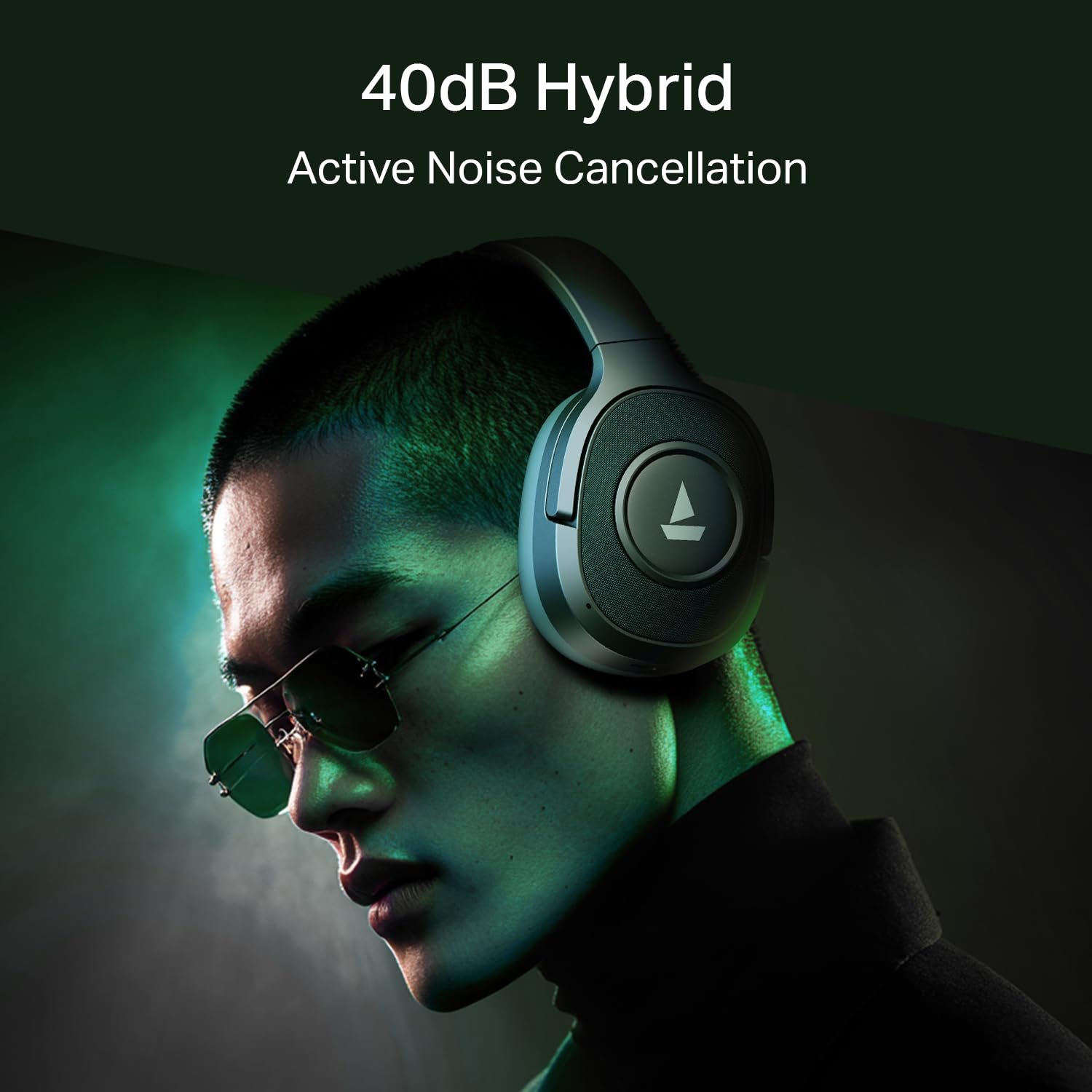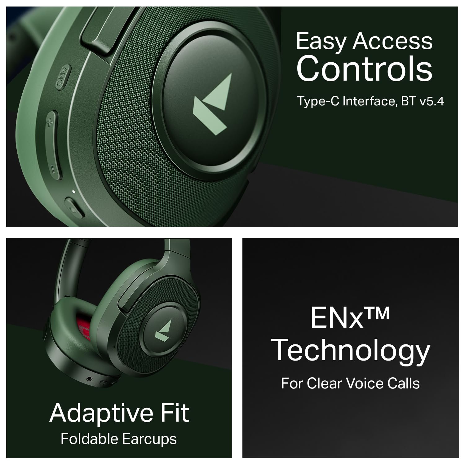 Boat (2025 Launch) Rockerz Plus 550 ANC, (~40dB) Hybrid ANC, 80Hrs Playback, 40ms Low Latency Beast Mode, 40mm Drivers, BT v5.4, Bluetooth Headphones, Wireless Headphone with Mic (Green Militia)