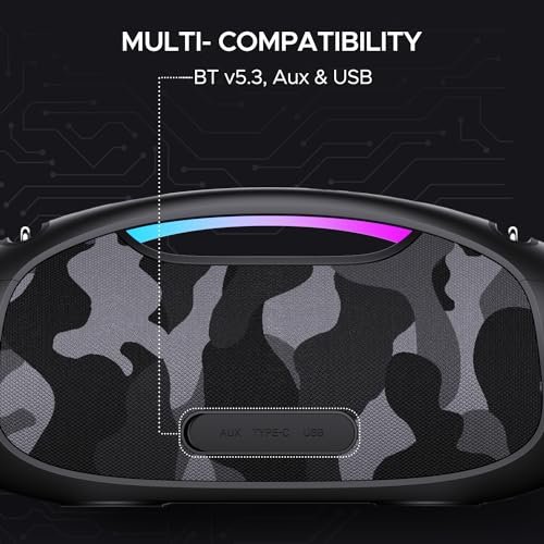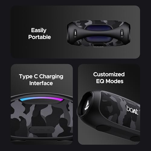 #boAt #Stone #Bluetooth #Speaker #RMS #Sound #RGB #LEDs #Modes #IPX6BT #v5.3Multi #Compatibility #AuxUSB #Playback #time #Hours #Type #ChargingCamo #Black