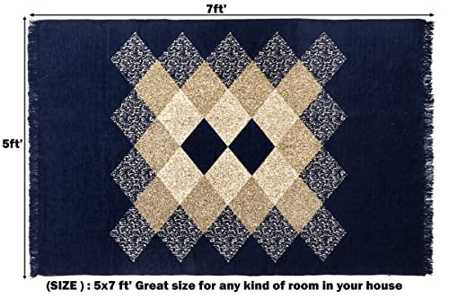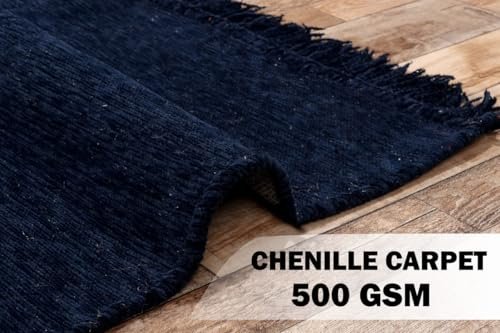 BSB HOME Designer Superfine Chenille Carpet | 500 GSM Velvet Carpet/Area Rug/Durries with Fine Gold Yarn for Living Room, Bedroom, Runner| 150×210 cm or 5×7 ft, Blue