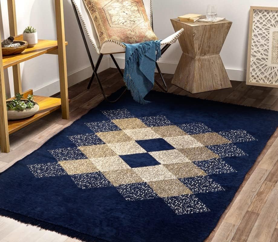 Be the first to review “BSB HOME Designer Superfine Chenille Carpet | 500 GSM Velvet Carpet/Area Rug/Durries with Fine Gold Yarn for Living Room, Bedroom, Runner| 150×210 cm or 5×7 ft, Blue”