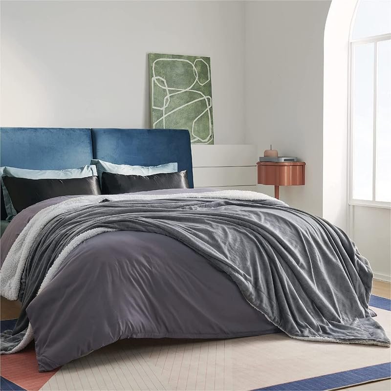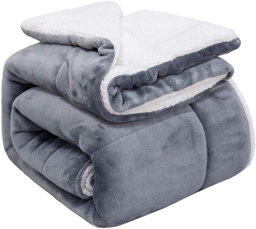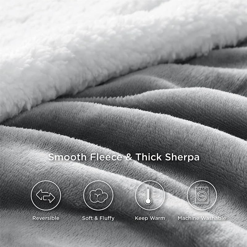 BSB Home Polyester Micromink Warm Sherpa Super Soft Flannel Solid/Plain Blanket for Winter, Grey, Size 150 x 220 Cms (Approx 4.7 x 7 ft)