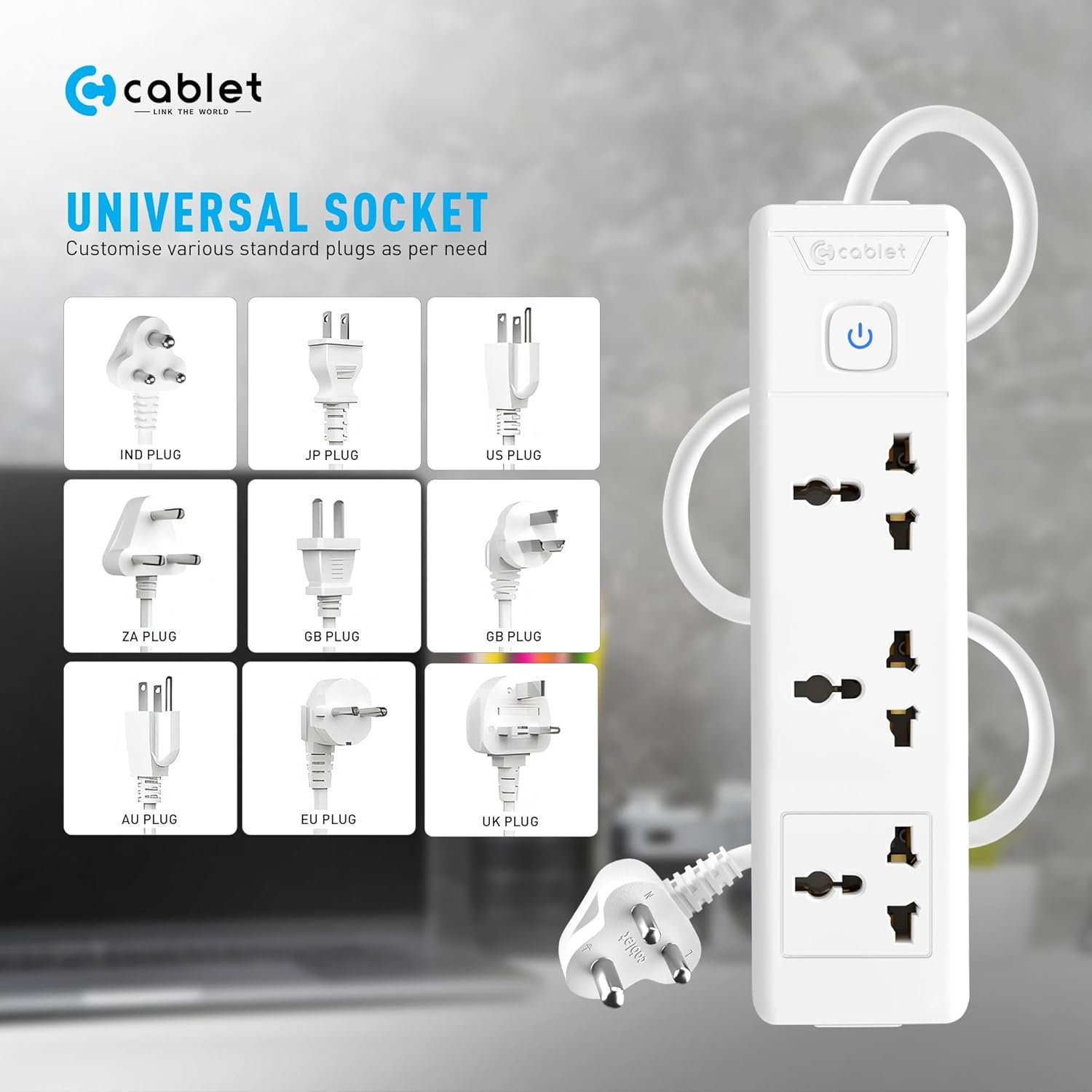 Cablet Extension Board 1.8 Meter Cable, 2500W 10A, 3 Universal Multi Plug Socket, Master Switch, 1.8 Mtr Heavy Duty Cord, LED Indicator, Power Strip for Home Office
