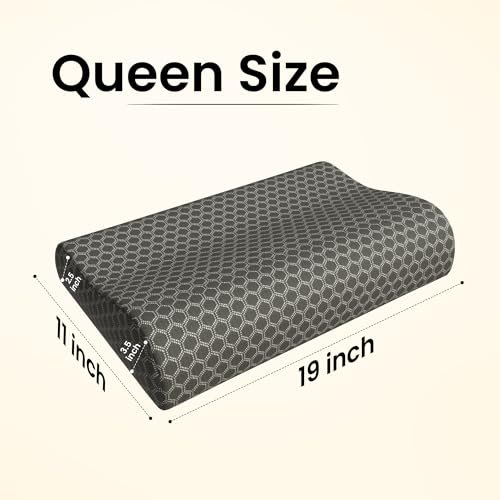 CareFoam Memory Foam Cervical Neck Pillow | 2 Years Warranty | Pain Relief Sleep, Improves Posture Spinal Alignment, Neck Pain Relief | Queen 19 x 11 x 3.5 Inch | Black Jacquard Cover | Pack of 2