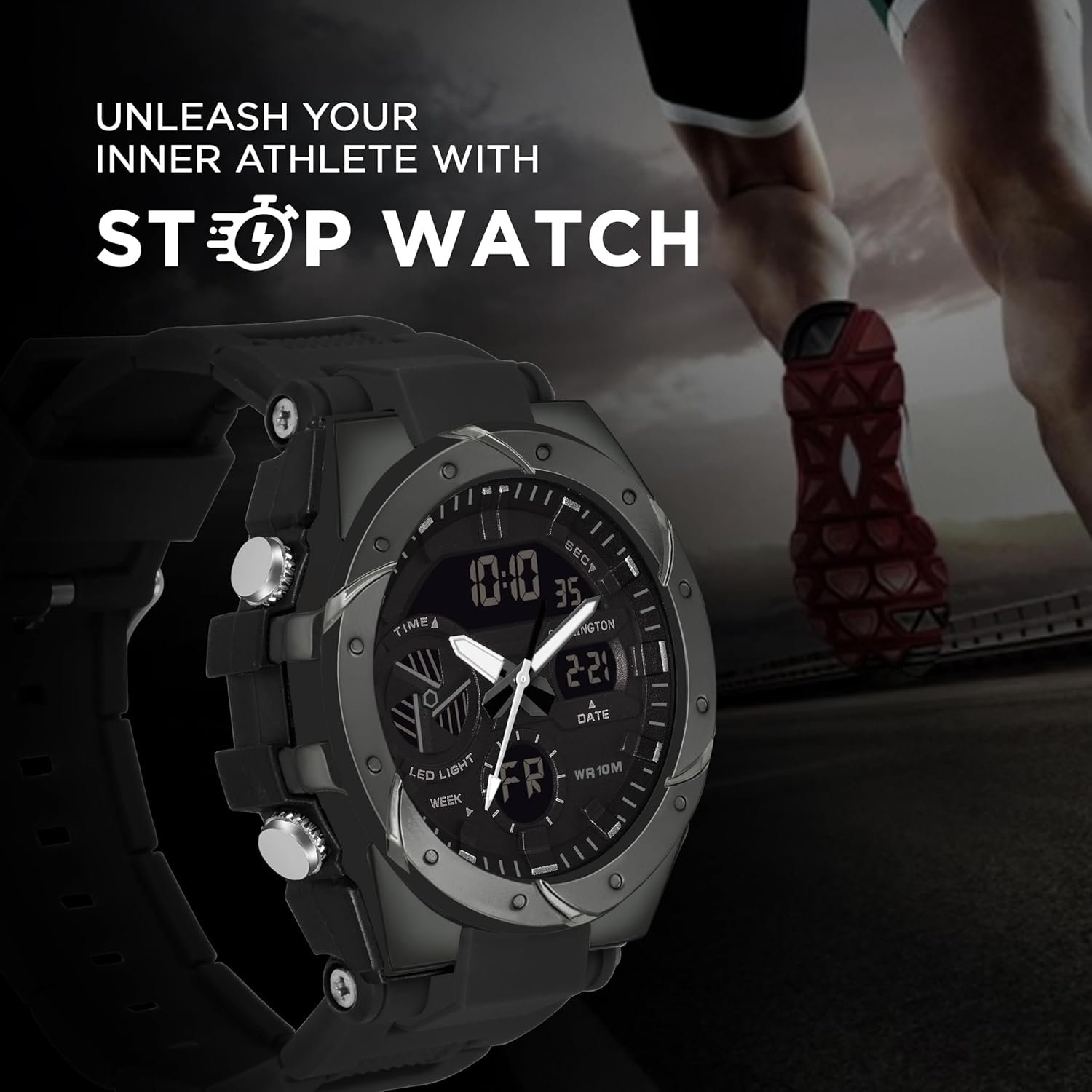 Carlington Analog-Digital Sports Watch Chronograph, Dual Time,Alarm, Stopwatch, Calendar, Water-Resistant, Shock-Resistant, Back Light Display. The Perfect Watch for Men-CT9140 Series