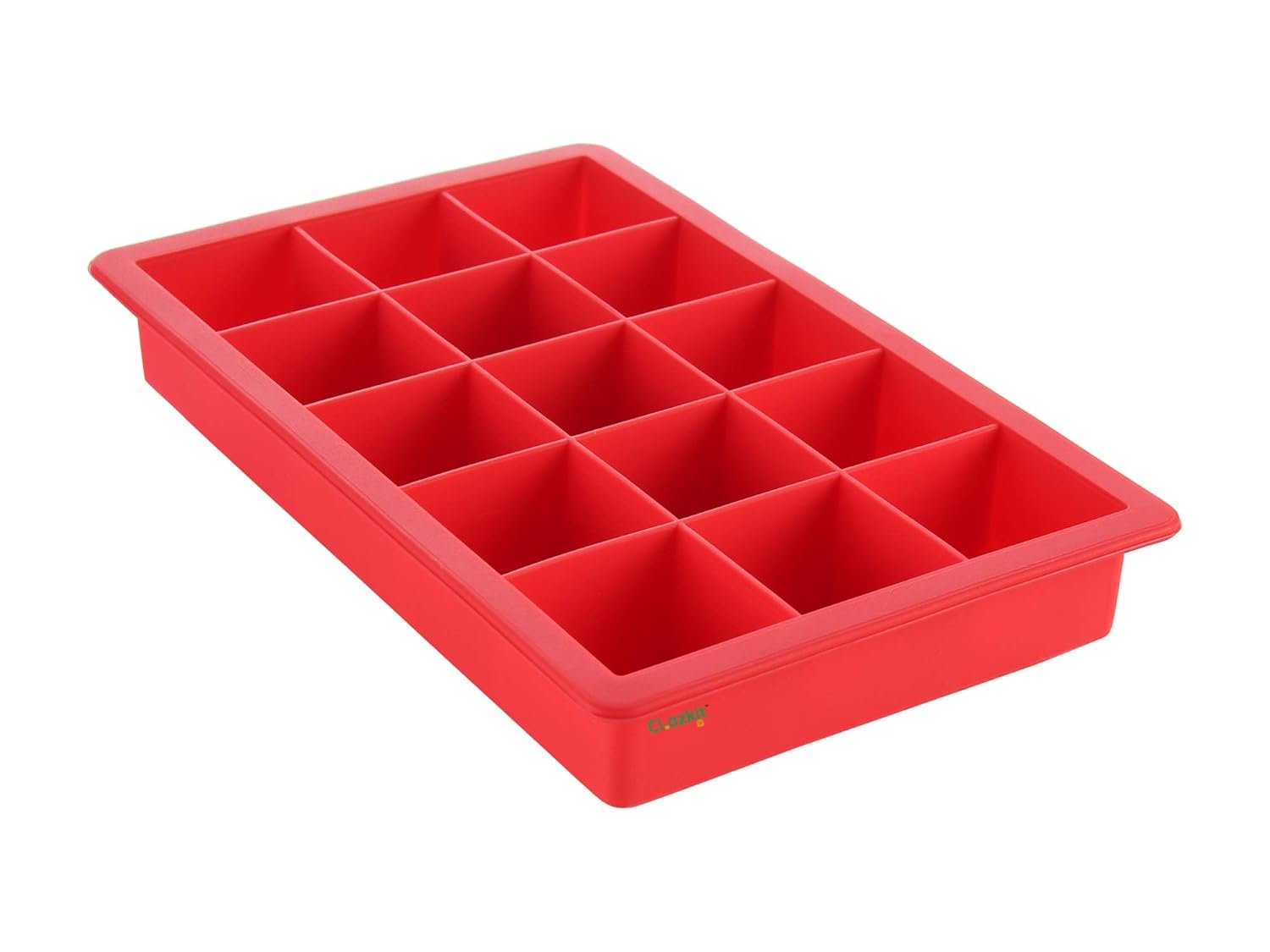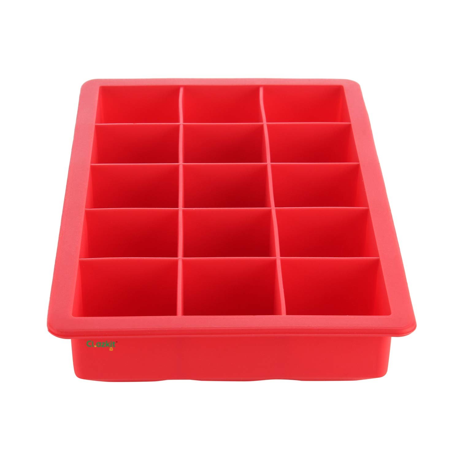 Clazkit Silicone Ice Tray Flexible 15 Cubes/Cavity, Multicolor, Red