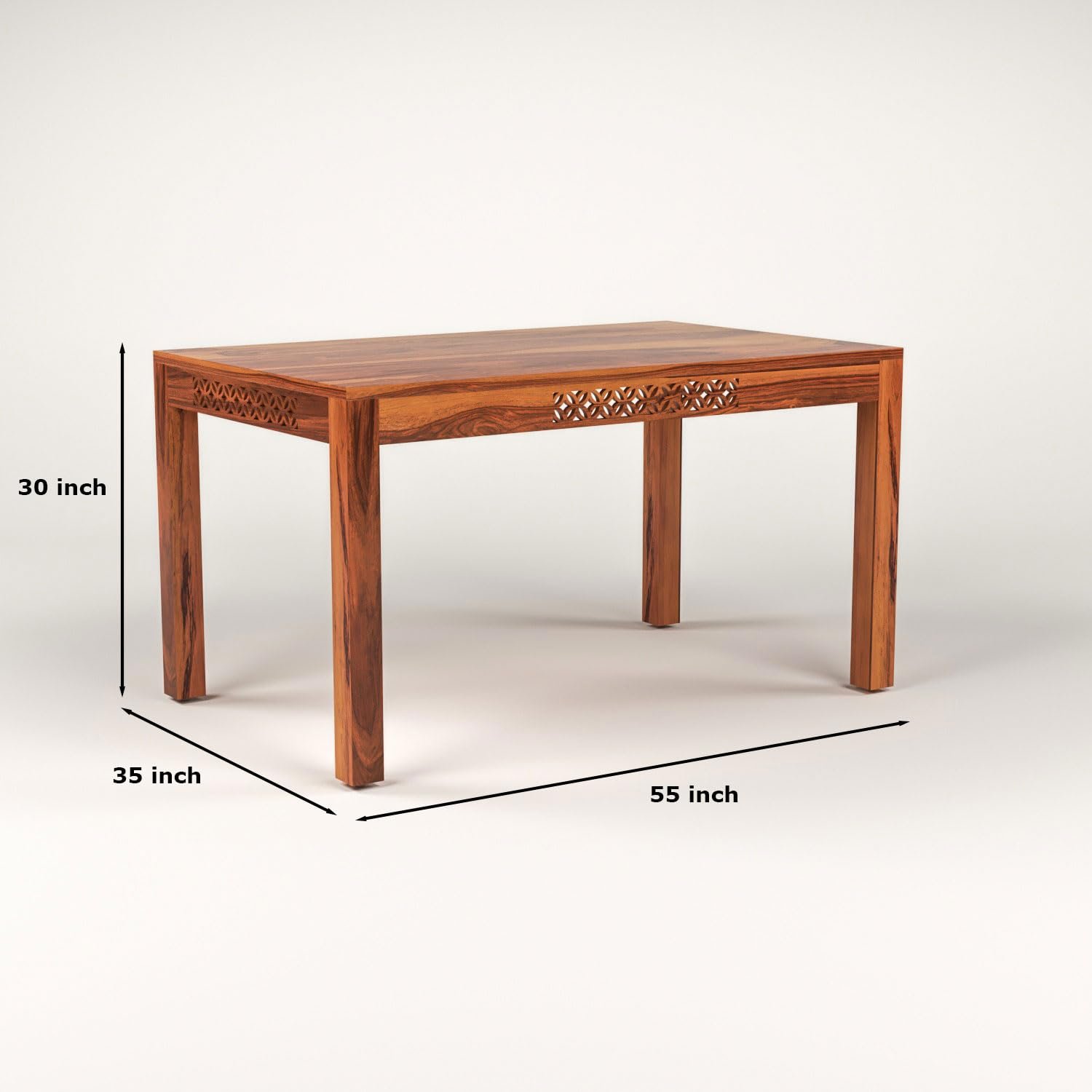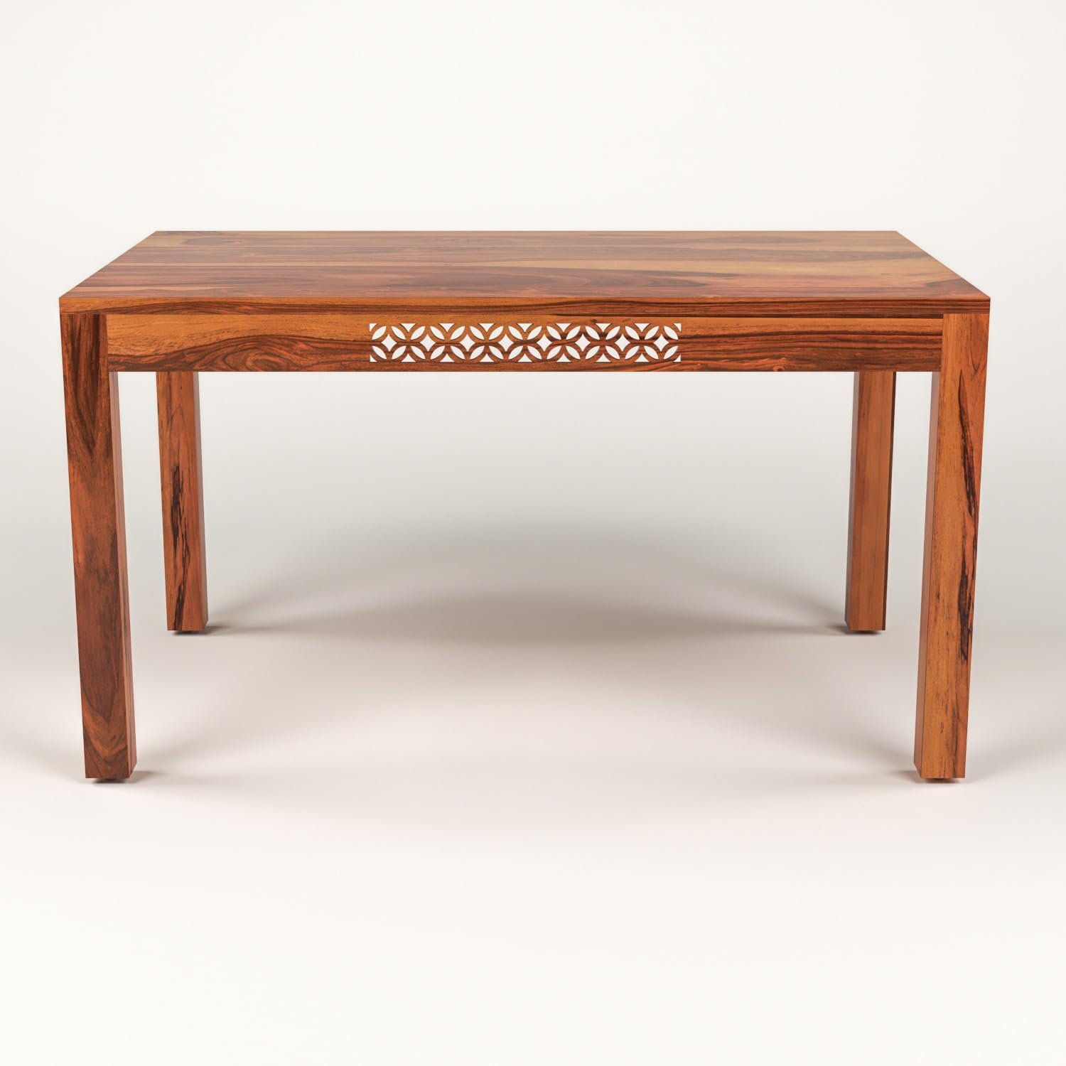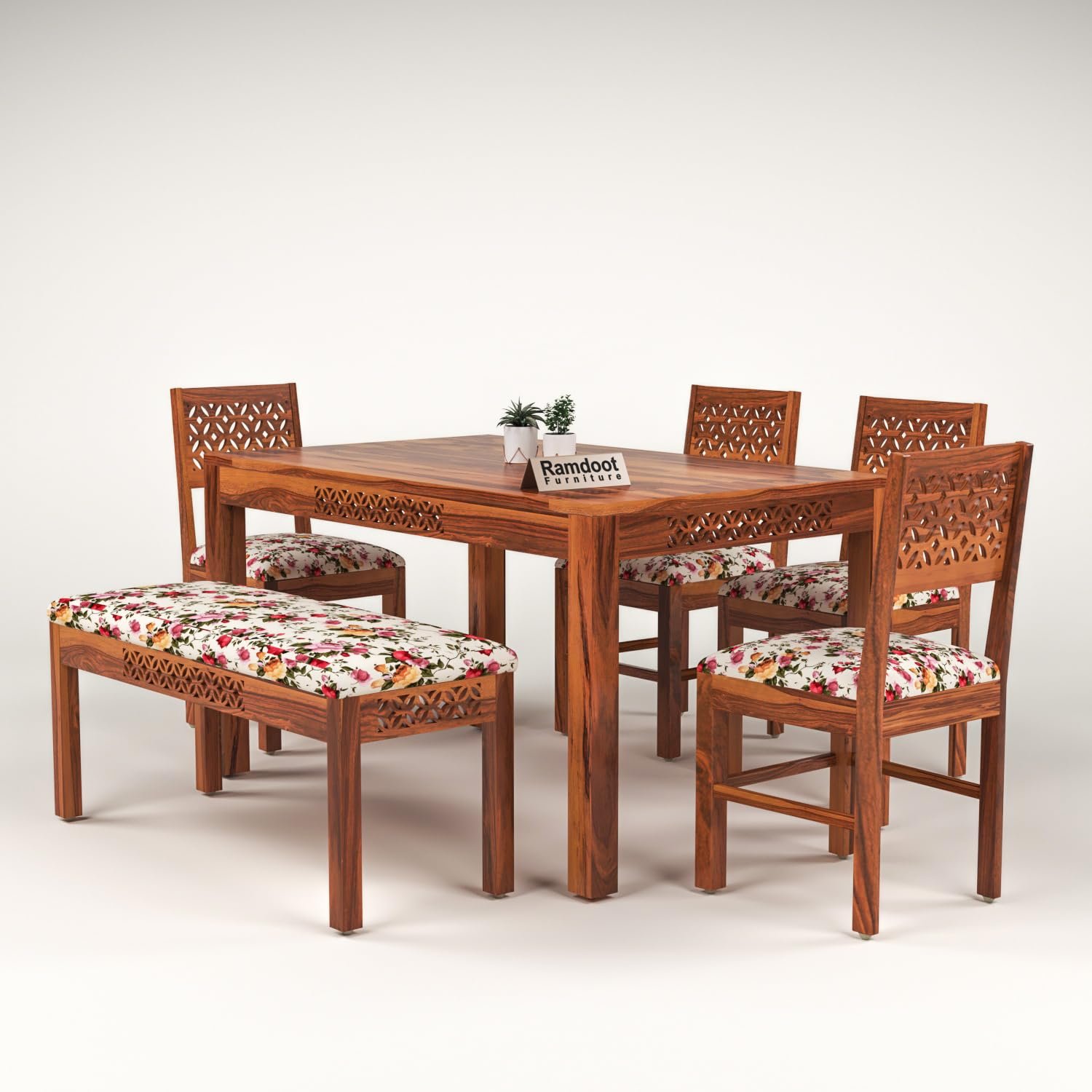 CNC Solid Sheesham Wood Dining Table Set 6 Seater | Six Seater Dining Table 6 Seater with 4 Cushion Chairs & 1 Bench for Living Room | 6 Seater Dining Set for Hotel Restaurant, Honey