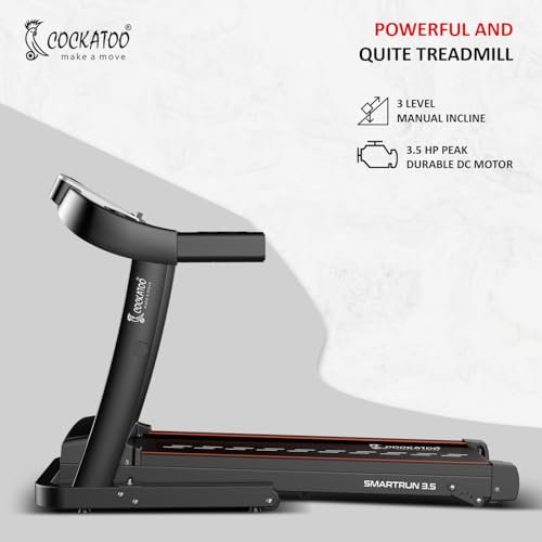 Cockatoo SmartRun3.5 3.5HP Peak DC Motorized Treadmill for Home, with 3 Level Manual Incline, Max Speed 14 Km/Hr, Max User Weight 120Kg,(DIY Installation)