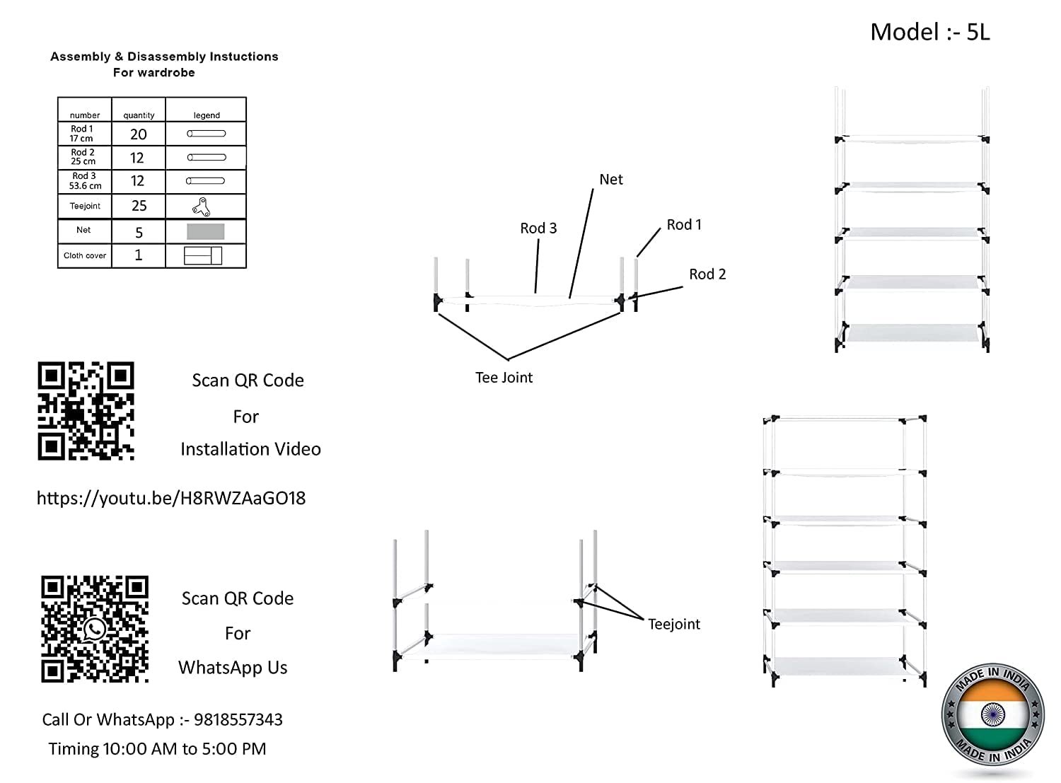 Be the first to review “Collapsible Portable Foldable Wardrobe Storage Shelves Organizer for Clothes Racks Fabric Almirah Non Rustable Iron Storage Unit (5 Layer) (Brown)”