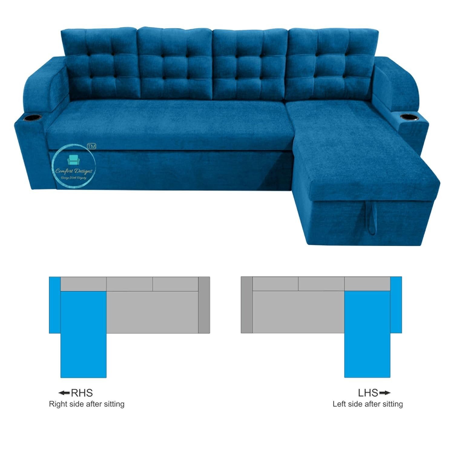 Be the first to review “Comfort Designs Nora Textured Premium Polyester Fabric 5 Seater Corner Sofa Cumbed for Living Room, Functional Storage, Soft, Lightweight, Comfortable Sofa (Blue)”