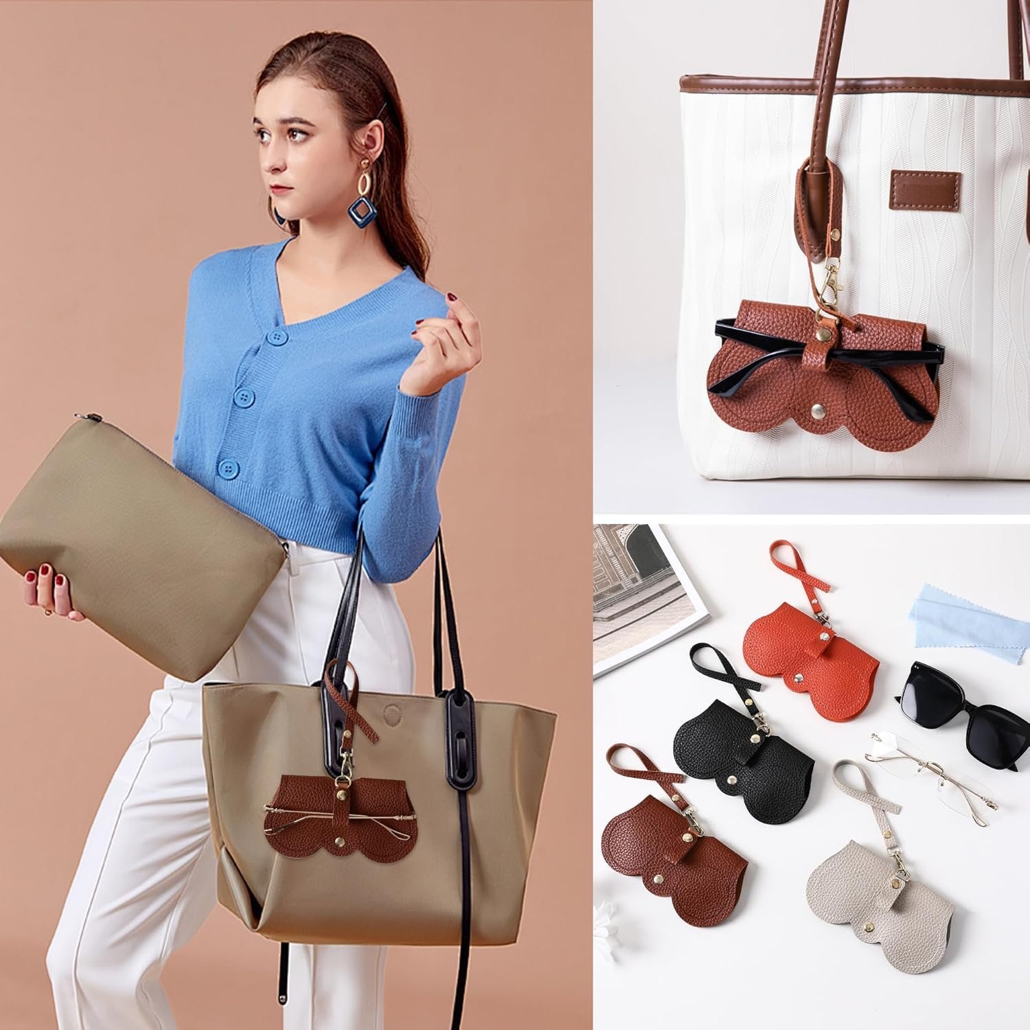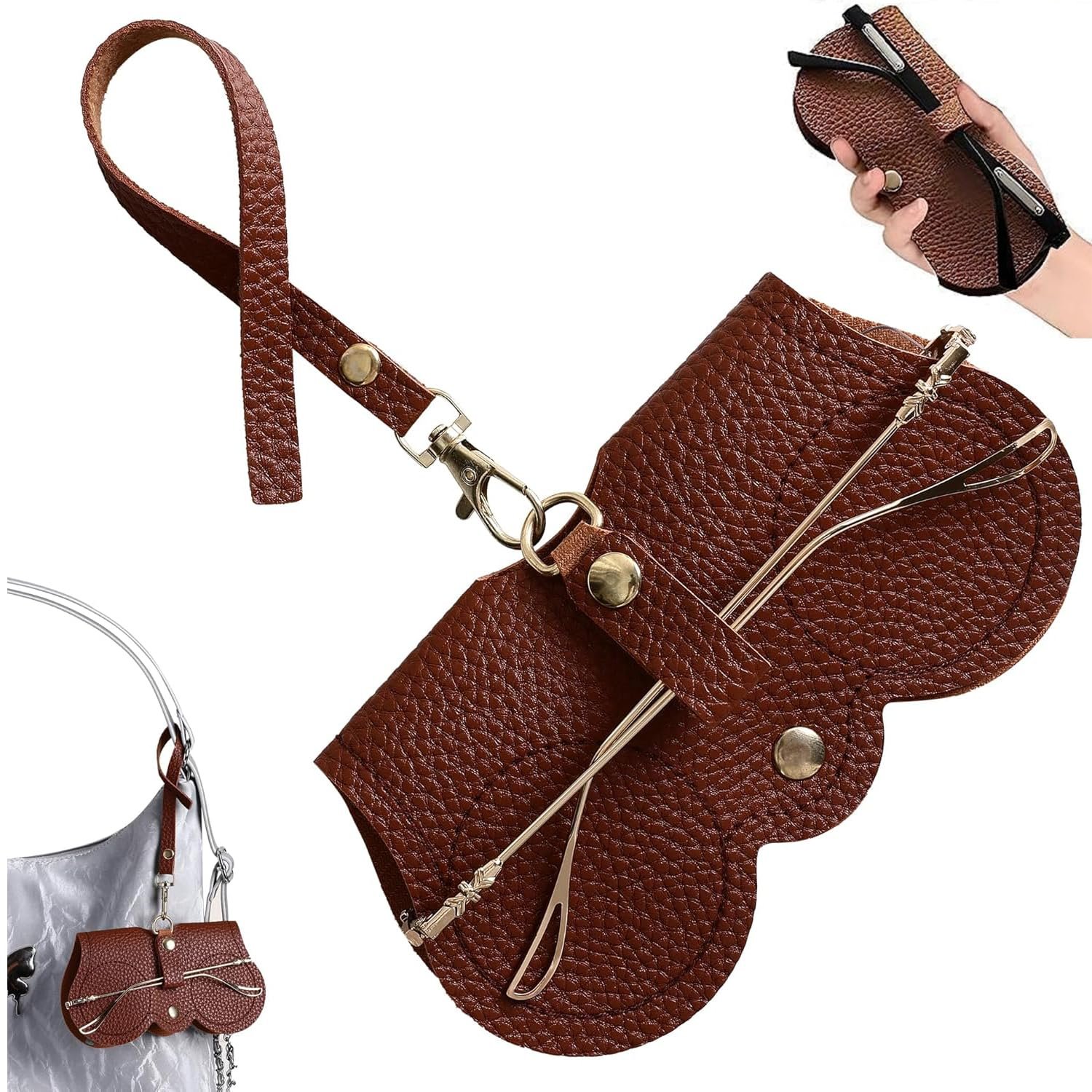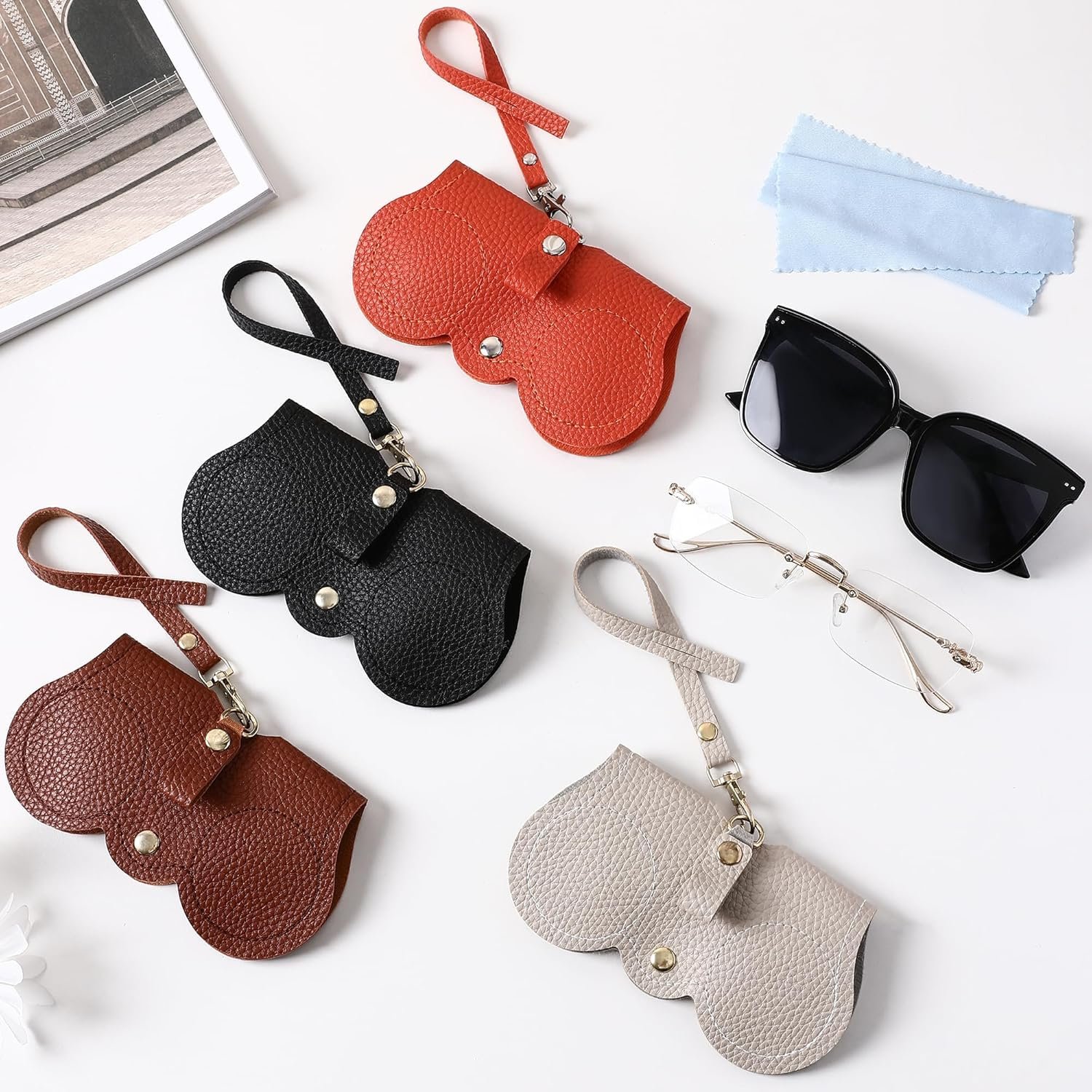 DIVUE Leather Sunglasses Case, Sunglasses Eyewear Case Artificial Leather Button Cover,Portable Outdoor Travel Holder Eyeglasses Bag,Sunglasses Pouch,Spectacles & Goggles For Men & Women