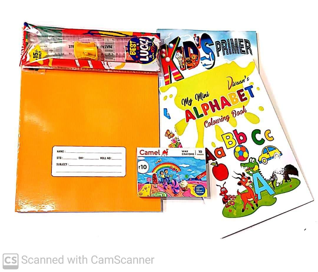 Donation kit for Nursery to Sr.Kg Kids Includes Basic Learning Book|Color Book| Crayons |3 in 1 Note Book for English,Hindi,Maths/Pencil Eraser sharpner Set. All Packed in Folder. (DO1)