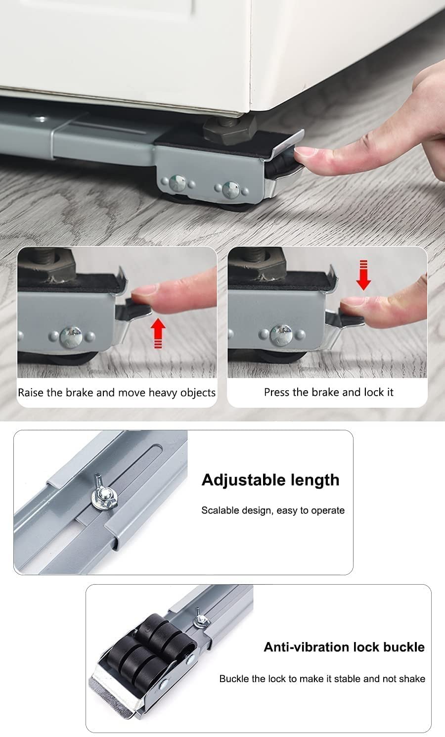 Drake Heavy Duty Adjustable Multifunction Metal Stand/Trolley with Wheels for Refrigerator Washing Machine Dishwashers Dryers Furniture Any Heavy Objects – 1 Pair(Furniture Movers)