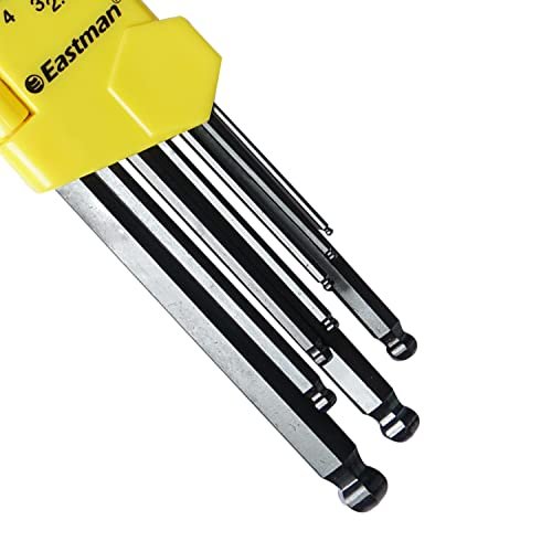 Eastman Ball Point Allen Keys, Set Of 9Pcs, Metric Sizes 1.5 To 10, Chrome Vanadium Steel, Comfort Grip, Black Finish, Fully Heat Treated 48-52 Hrc, Eak-2406
