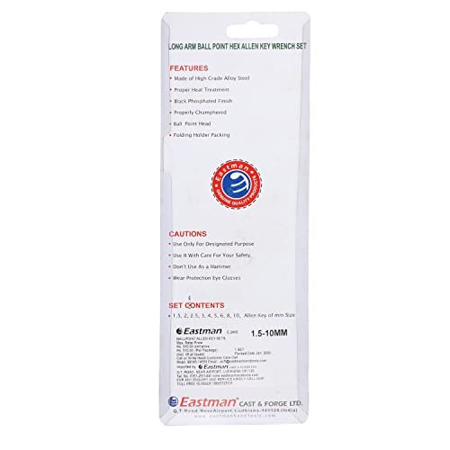 Be the first to review “Eastman Ball Point Allen Keys, Set Of 9Pcs, Metric Sizes 1.5 To 10, Chrome Vanadium Steel, Comfort Grip, Black Finish, Fully Heat Treated 48-52 Hrc, Eak-2406”