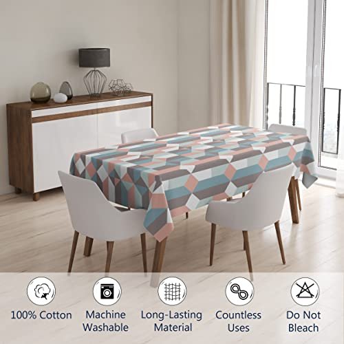 Encasa XO Printed Cotton Table Cloth (6 ft Long) for 4 to 6 Seater Large Dining Table – Aspect – Heavy Twill Fabric Mercerised, Washable, Rectangular for Home, Hotel, Restaurant & Banquet