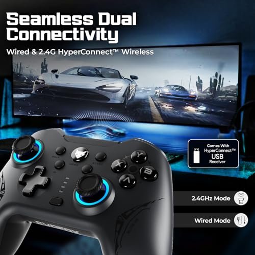 EvoFox Elite X2 Wireless Gaming Controller For PC, Dual-Mode (2.4G & Type C), Hallsense™ Magnetic Hall 3D Joysticks & Triggers, EZ Click Macros, New Precision & Turbo Mode, Dual Vibration Motors(Grey)