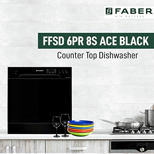 Faber 8 Place Dishwasher | 6 Wash Programs |Adjustable Upper Rack & Cutlery Tray | 8L Water/Cycle | Suitable for Oil & Masala Stains | 2Yr Warranty & 5Yr On Cavity | FFSD 6PR 8S Ace