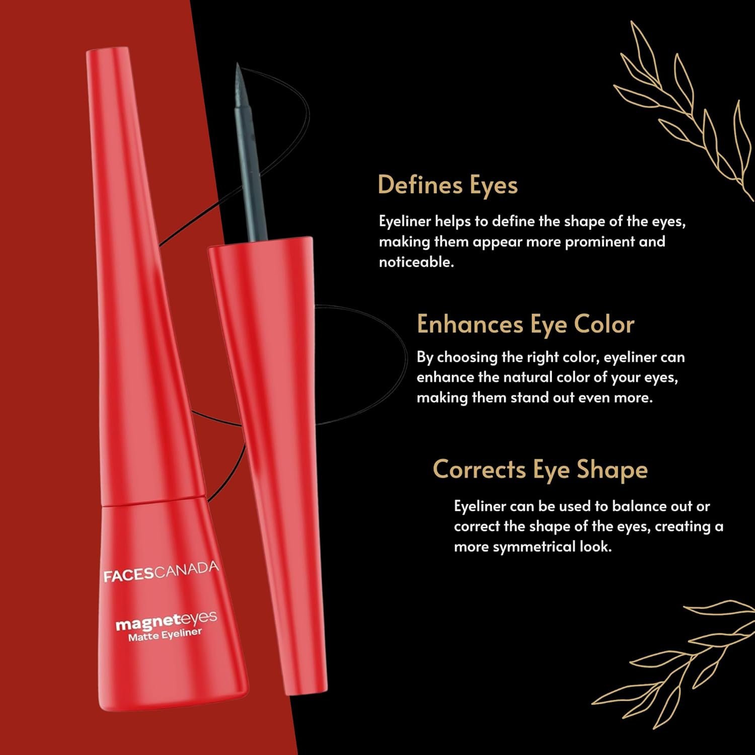 FACES CANADA Magneteyes Eyeliner – Black, 4.5ml | Intense Matte Finish | Quick Drying | 24HR Long Lasting | Fine Tip For Precise Smooth Application | Almond Oil Enriched | Waterproof | Smudgeproof