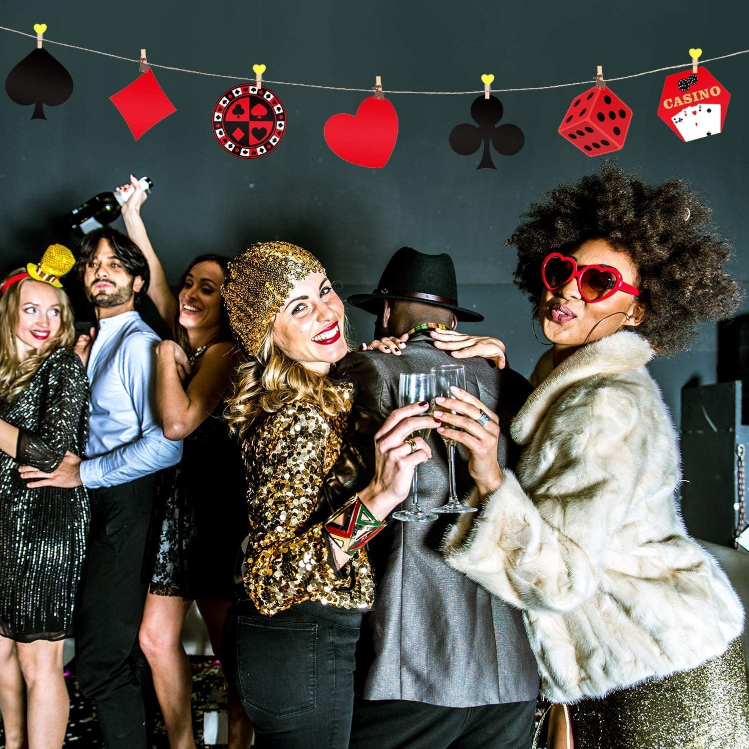 Festiko® Las Vegas Casino Party Cutout Decorations 35 Pieces Playing Card Sign for Birthday School Classroom Welcome Back Party Supplies