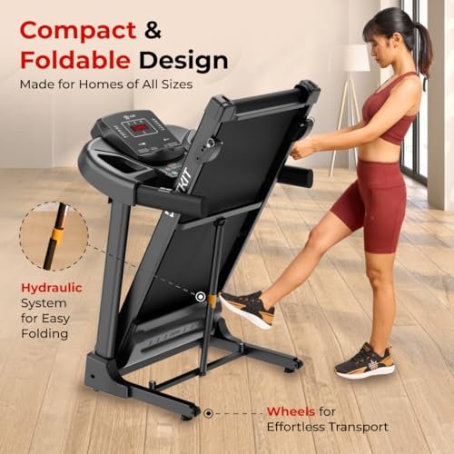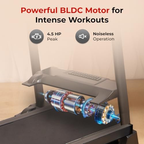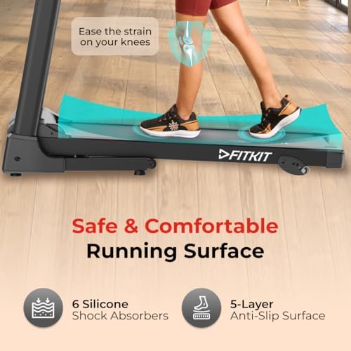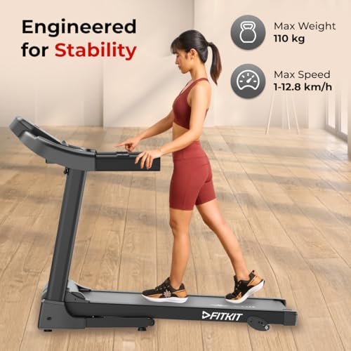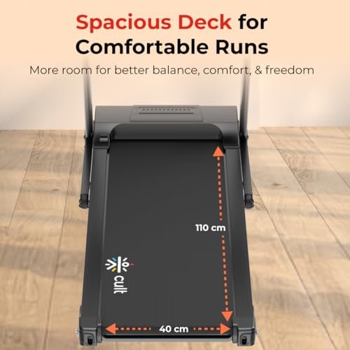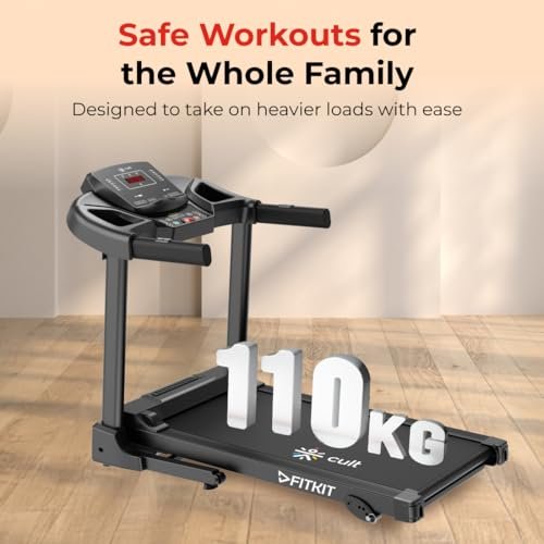 Fitkit by Cult PowerRun-96 BLDC Motor Treadmill (4.5HP Peak) | 12.8km/h Max Speed, 110kg Weight Capacity | 12 Preset Programs, LED Display | AUX/MP3/USB | Home Gym Equipment, Black