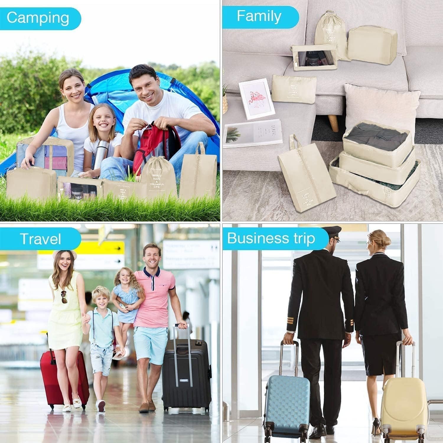 FLYNGO Nylon 8 Pcs Travel Organizer Pouch Packing Cubes For Clothes Space Savers Bags Cosmetics/Underwear/Socks/Shoes Toiletry Bag Laundry Organiser(Beige)