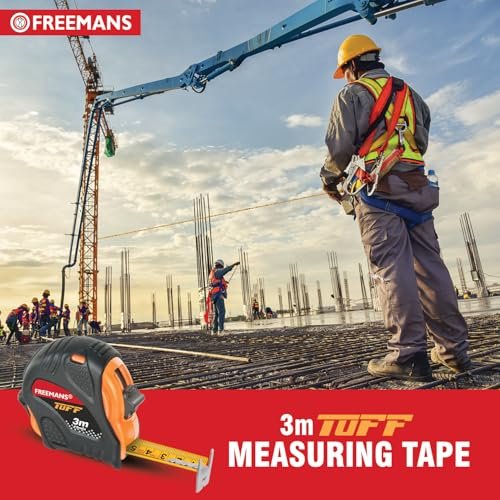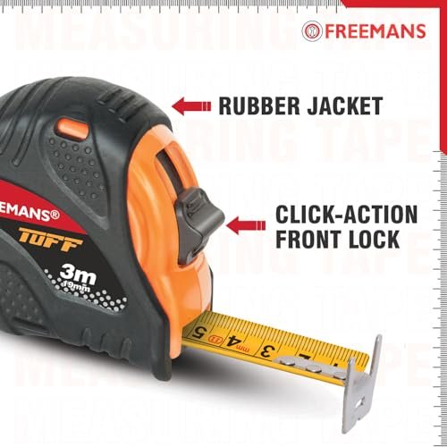 FREEMANS TUFF 3m:19mm Steel Inchi Measuring Tape – 3m with a Non Slip Rubber covered ABS case, Double-sided Printing and Belt Clip